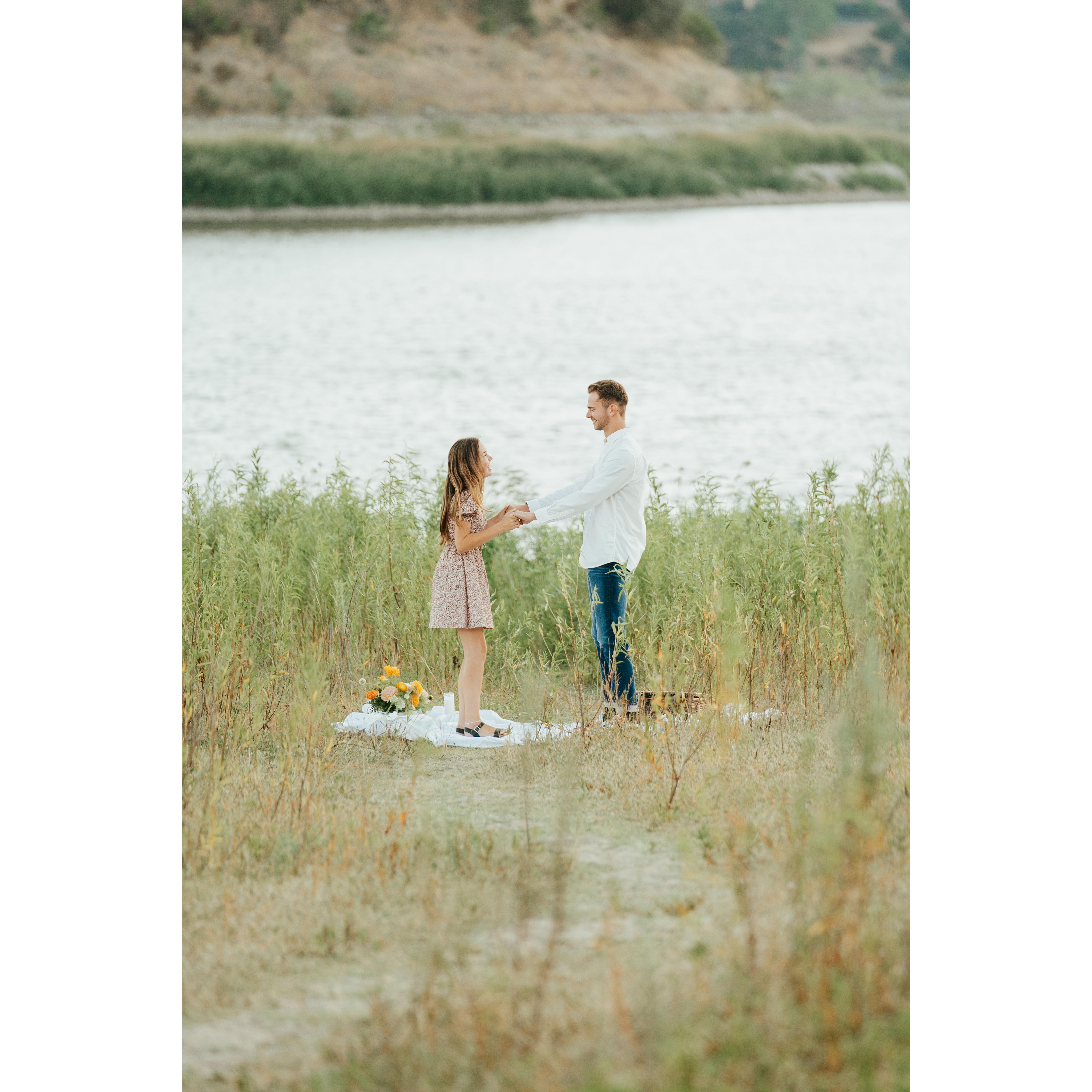 Aaron proposed at Lake Hodges on August 12, 2023. He had planned it all out with our best friends, and they helped him pull it off. Sarah knew she was going to be surprised because she knew nothing about their plans for the night, but she could not have guessed he was going to get down on one knee! It was everything Sarah could have dreamed of and more.