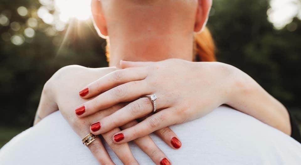 I always thought about what my engagement would be like. I also thought about how I wanted my nails to be done, I wanted to be dressed nice, wearing makeup, ya know, allllll the typical things girls want to have before getting a new ring on their finger. This is NOT that engagement... Some friends were coming over to celebrate me getting a coaching job I was hoping for.. (or so I thought).. While I was gone with Michelle to the liquor store, I kept wondering why she was taking the LONGEST ROUTE POSSIBLE to get there, but she was driving, so I just kept my mouth shut. When we get back, it's dark out back, & quiet, not a soul in the house either.. Weird, right? When I walked out the back door, there he was, surrounded by lights, down on one knee. Most girls cry, not me. I honestly think I was so surprised that I didn't know how to react. I even asked him "what are you doing.....?" He had it all planned & it was precious. He had my favorite flowers & everyone got to witness us take our first step into our future together. He spoke the sweetest words to me & had the most beautiful ring I’ve ever seen in his hand. It was awesome. Oh, side note, nails weren't done, no makeup on, in a KY tee shirt & my hair was in a bun.... but I wouldn't change it for the world. He puts so much thought into everything he does.