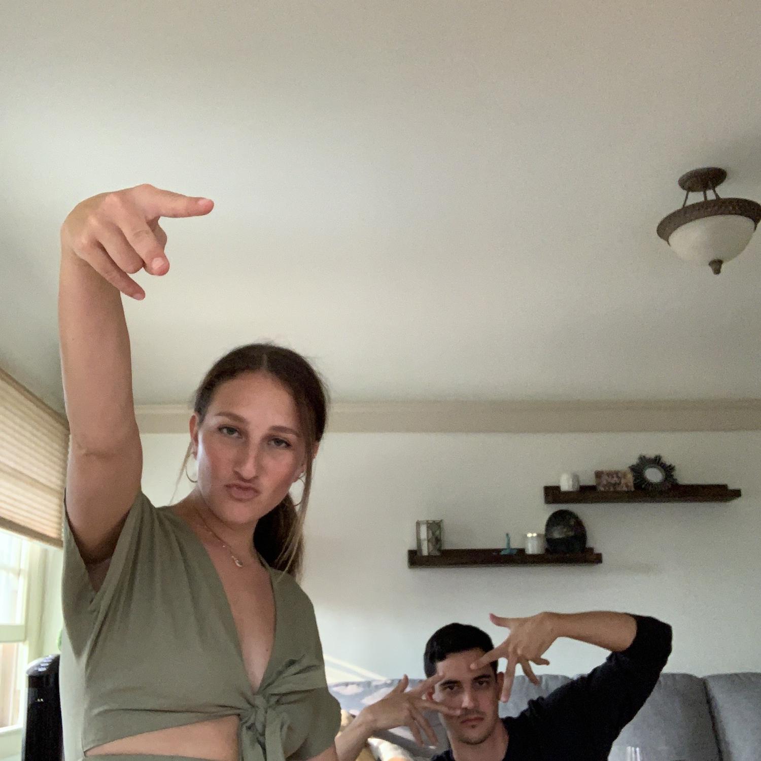 This photo was taken after we went skydiving! We were both in utter shock!