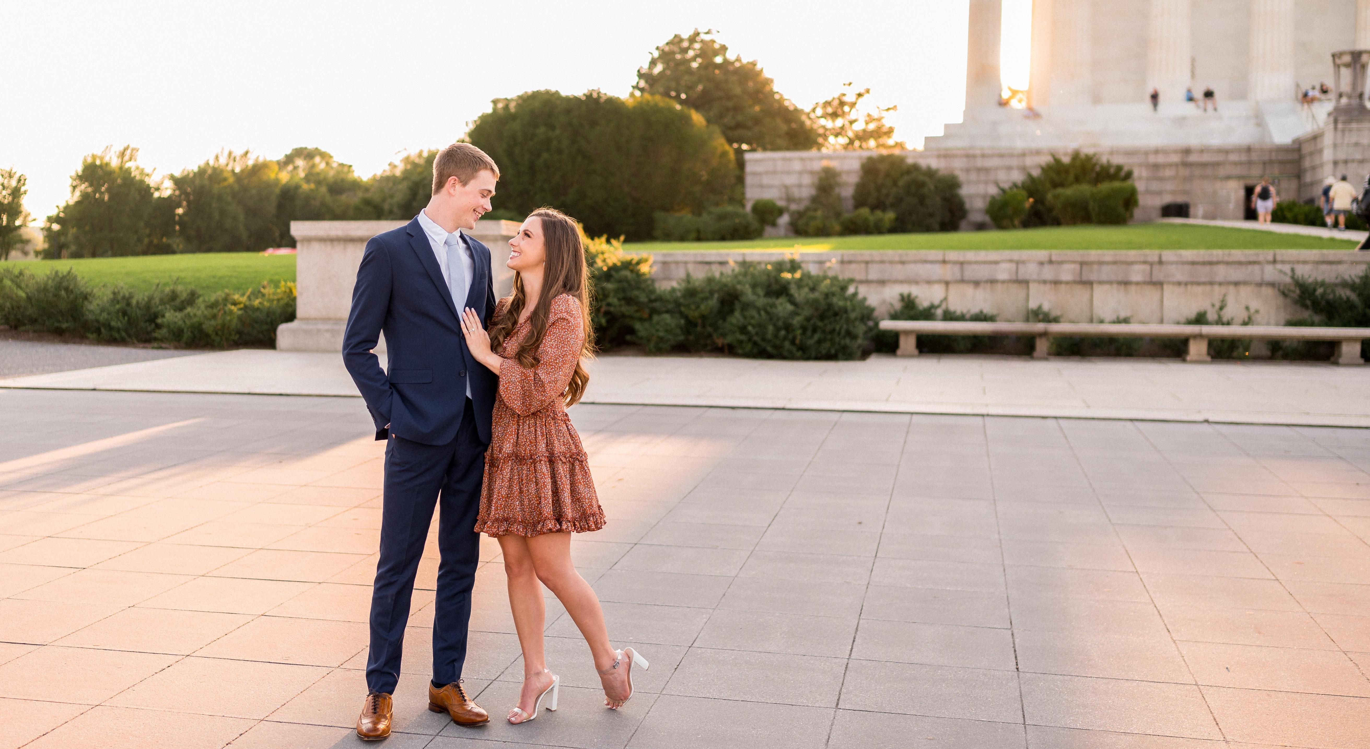 Savannah and Tyus met in Washington, D.C. while they were both working for Teach for America. Savannah was in her second year teaching Spanish at Eliot-Hine Middle School after graduating from UVA, and was introduced to Ty, a new TFA member from University of Colorado Boulder. Ty was choosing between two schools and the couple jokes that fate ultimately brought him to Eliot-Hine, which was a struggling middle school in trailers. The competing offer was at a top-notch high school with a brand new shiny building and an incredible athletic program. On paper, the decision made no sense. When Ty saw her again at professional development, he admitted that he could not keep his eyes off Savannah all day. He joined the staff and when they started the year their classrooms were right across from each other with big windows facing one another. The students caught on quickly and it was a major point of discussion among them. Eventually, after forming a friendship, Ty asked Savannah to go shopping at Georgetown. While at the time it was friendly, they now consider this their first date. They had an amazing time lingering for hours at the Nike store and others, browsing store to store as an excuse to keep spending time together. Not long after that shopping date, they were at each other's homes at Thanksgiving and Christmas, and discovered many of their values and interests aligned; service, education, family, traveling, being outdoors, playing and following sports (and some opposing teams!) They both quickly knew that this was their person. Almost two years later, Ty surprised Savannah at that same Georgetown location for their engagement. Savannah and Ty completed Teach For America and left Washington, but cherished their time there. They chose it as the location for their engagement shoot because or the many memories.