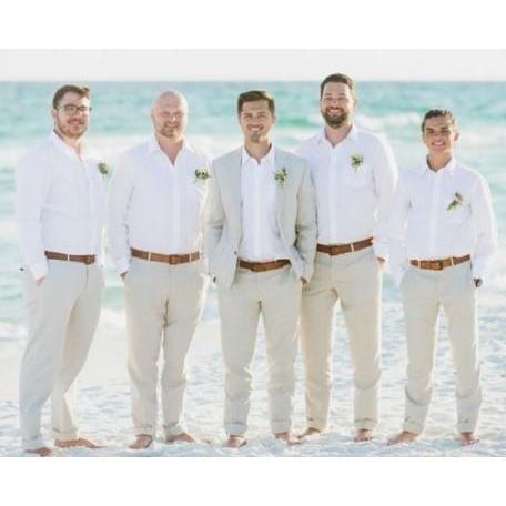 For the gentlemen, please wear a white button down shirt with beige/light tan dress pants with a brown belt.