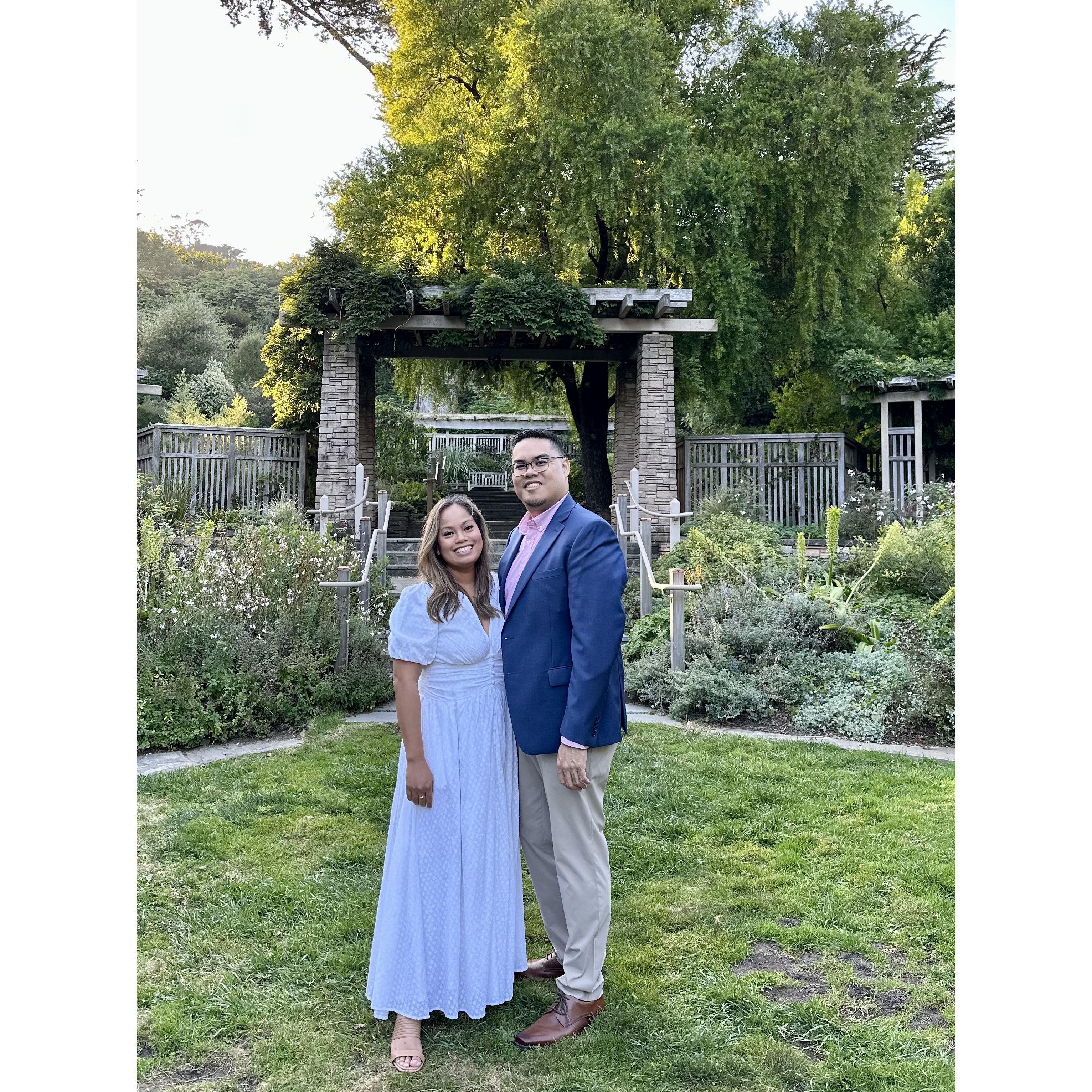 We met the old fashion way on "Coffee Meets Bagel" during the later part of the covid lockdown. We had our first date at "Alta Plaza Park" where Jef brought a picnic and 10 thousand drink selections since Sheryl couldn't make up her mind. A year or so later, Jef proposed a walk to the top of Alta Plaza Park and surprised her with some of her closest friends and sealed the deal at the top of the 10 thousand steps. Come watch how the story unfolds at our Wedding and be part of 10 thousand more memories together.
