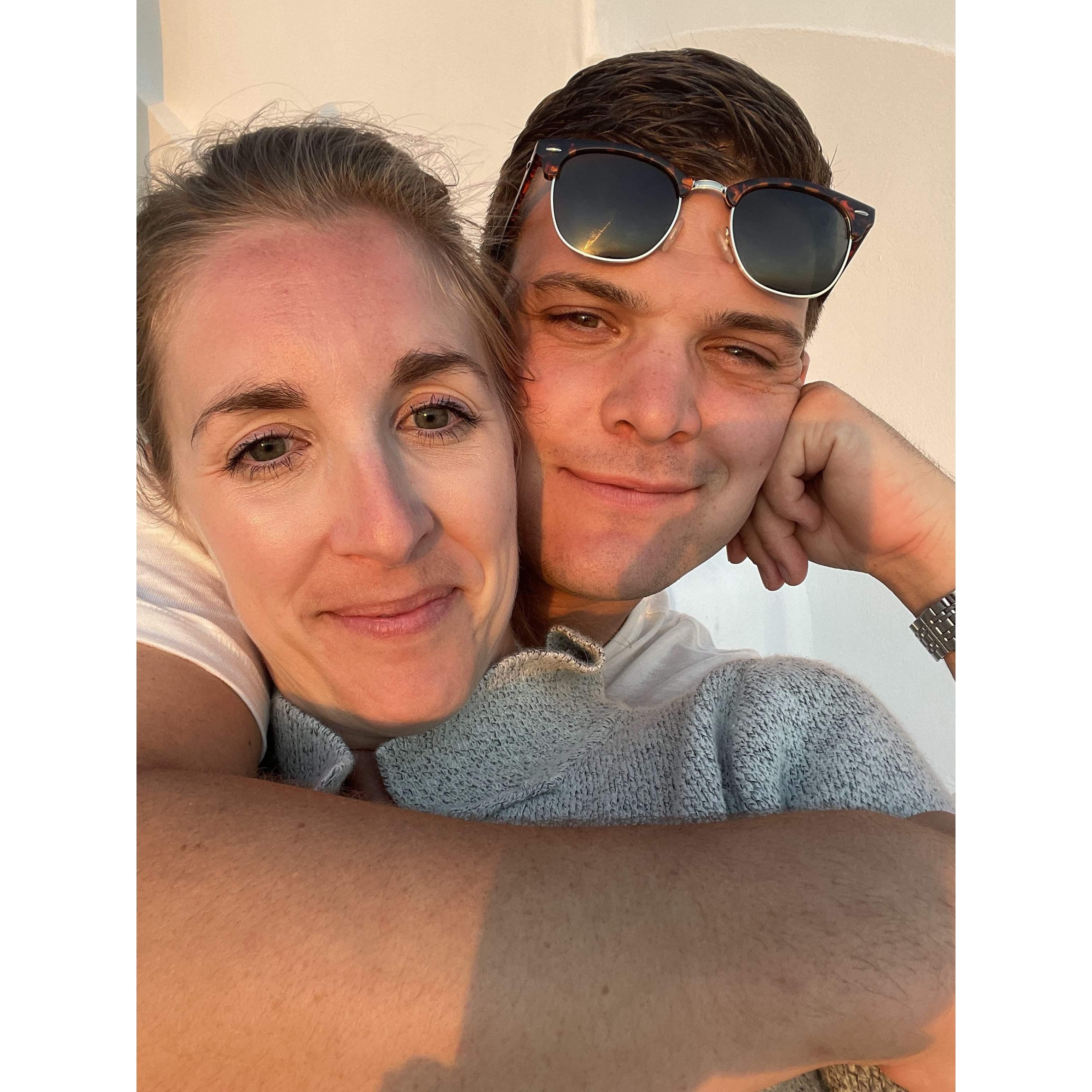 Sunset from our balcony in Santorini!