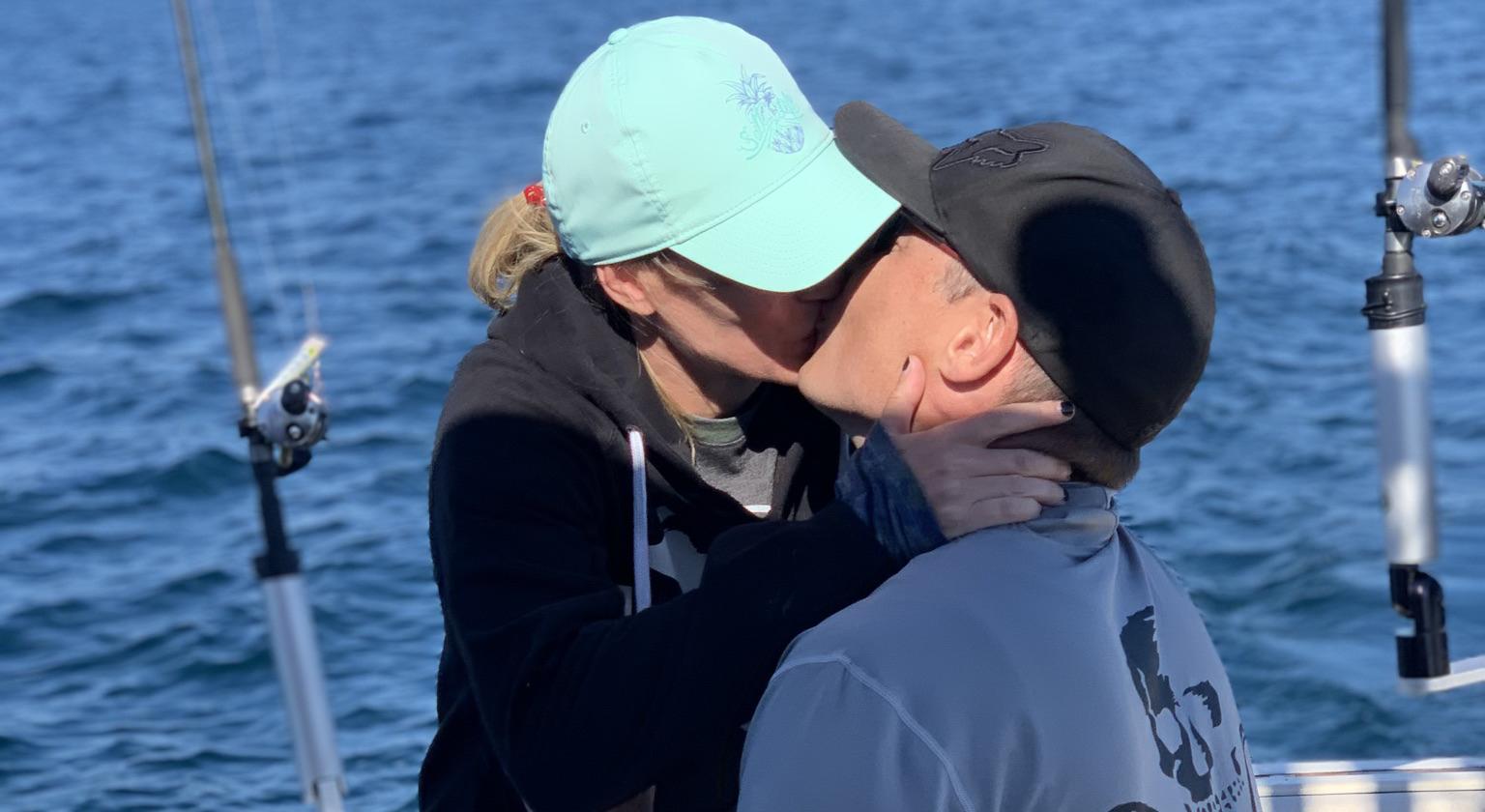 For brittanys birthday this year, we decided to go to Michigan to go salmon fishing. That morning we were supposed to go fishing and meet a friend at 5:15am! We went to bed late and ate some not so nutritional food at 11pm the night before. Matt got up and was getting ready to go and Brittany was still snoozing after taking a couple dramamine and didn’t feel great and didn’t want to go. Matt had to gently nudge her to get up. She got up and took another dramamine (not realizing it makes you very tired) and got on the boat. Brittany ended up taking a nap for a bit then finally got up and was feeling better. Everyone was relaxing enjoying the weather waiting for some fish to bite. While brittany was being distracted, Matt asked the captain for a favor and he wanted to propose….and showed him his idea. The captain figured out a plan. The captain told a story about how anything can get caught on a line, for instance a bird one time was caught on the downrigger weight and showed us a picture of it. The fish weren’t biting so we decided to call it a day and reel in the lines. He asked me to reel one in then the captain helped the rest of the way, then he says something is caught on the line and doesnt know what it is, Brittany was curious and came over and as he pulled up the weight, there was a purple downrigger shaped like a fish that said Britt on it….and behind it was a flag that said will you marry me? Love Matt! He pulled off the perfect surprise and a very creative proposal.