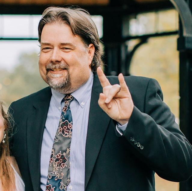 Probably checking the score for GSU and pretending not to cry.