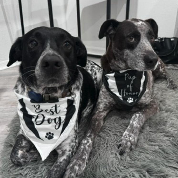 D'Arce and Limon are the beloved adventure pups of Siera and Ricardo. Limon, 5, is the life of the party (watch out for kisses) and can’t wait to bring the rings to mom and dad—just as long as we avoid being to close to the clifts edge, since we learned he is scared of heights while at the Grand Canyon! D'Arce, 7, is the sweet, shy one who loves a good bouldering hike and will definitely support Limon if the edge is nearby. Though a little reserved, he’s always up for a challenge. Both dogs will be thrilled to collect pets from our loved ones at the wedding and are great with kids, too!