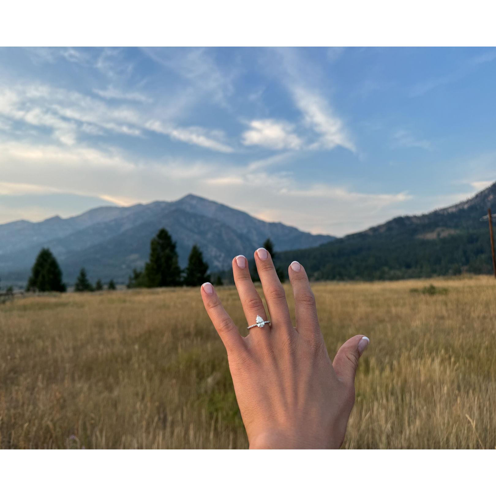 Luke "popping the question" surrounded by our family and friends on 08/06/2024.