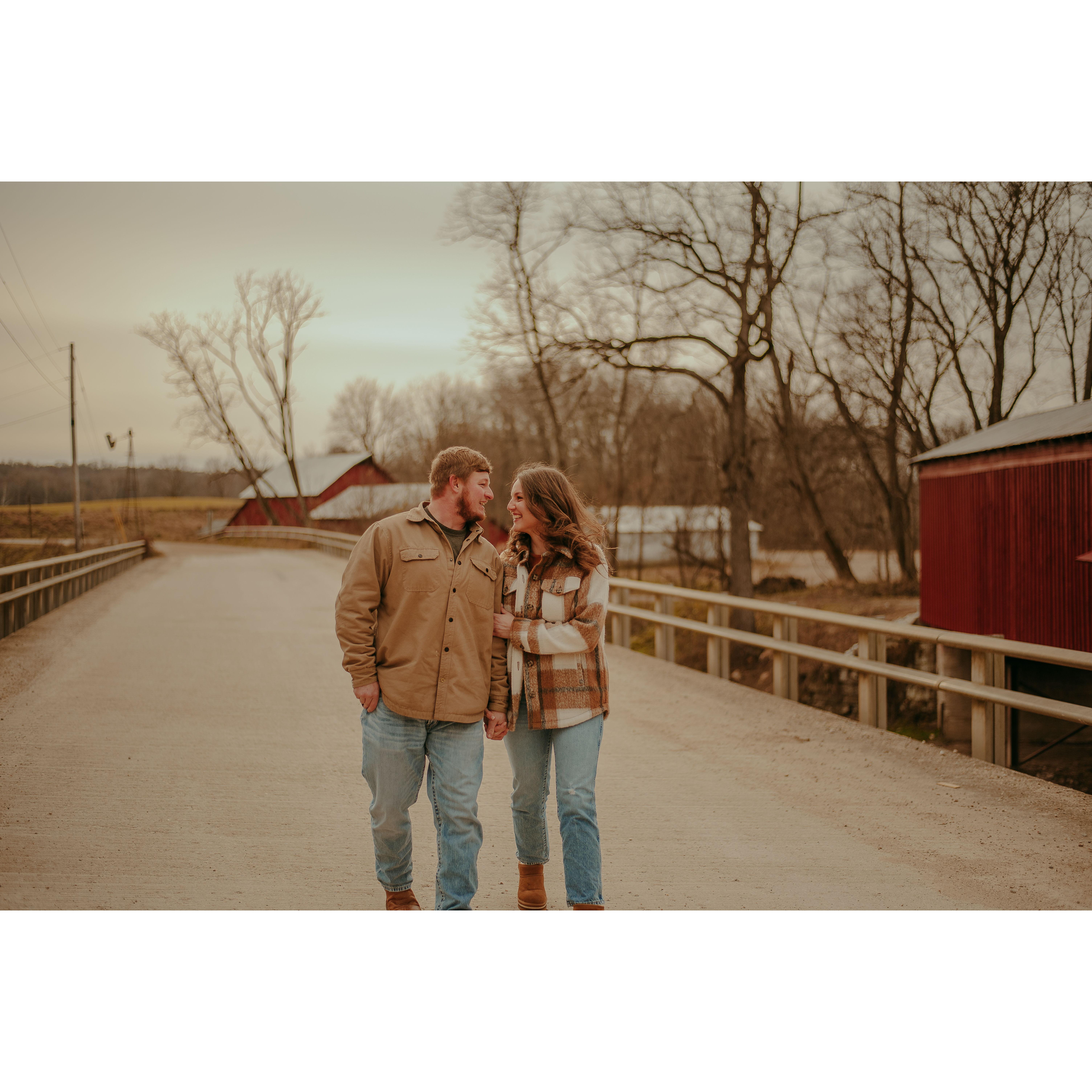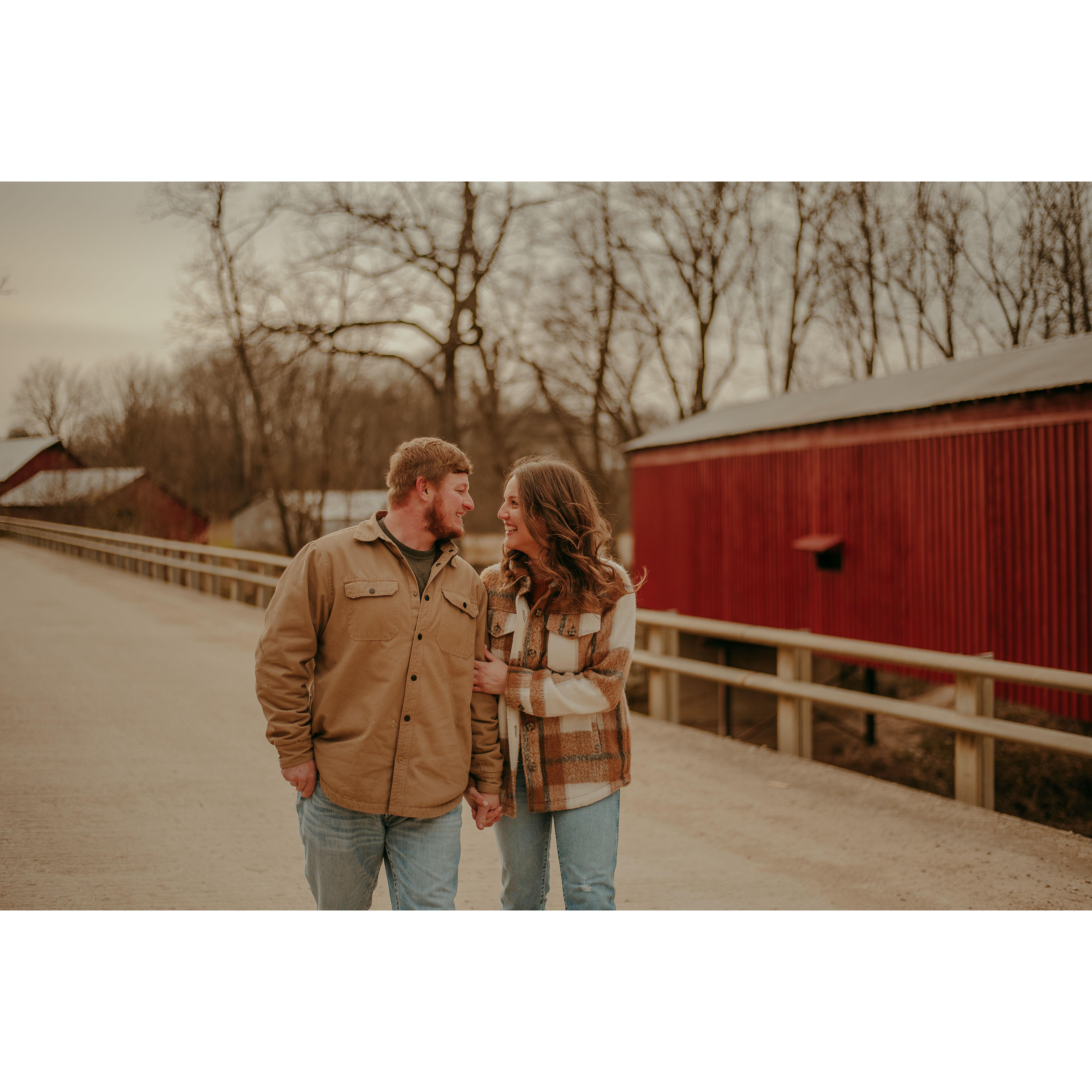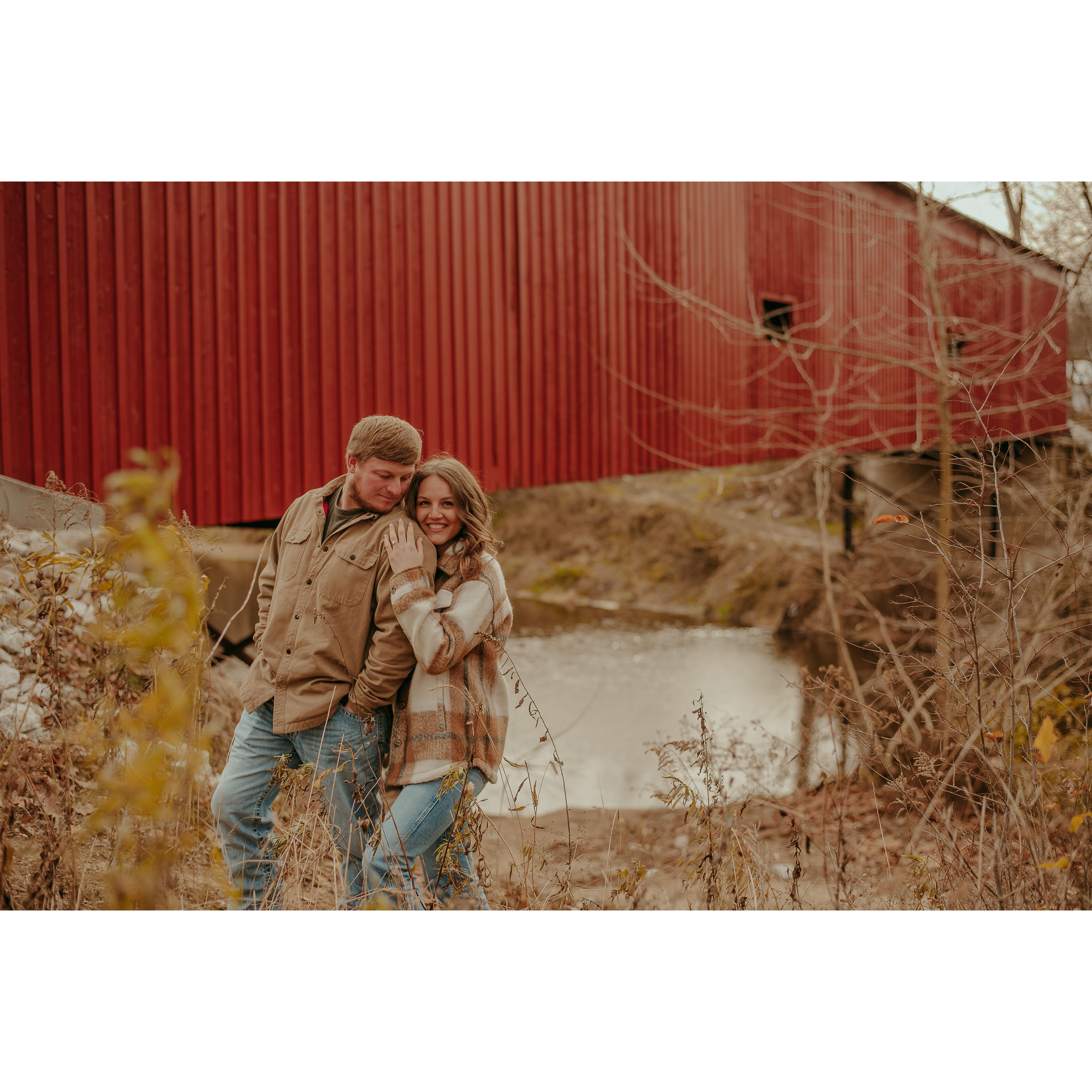 Our engagement photos were taken in Covington, Indiana the day after Gavin asked! We were visiting his mom for Thanksgiving and she was able to score us an awesome photographer on a brutally cold day!