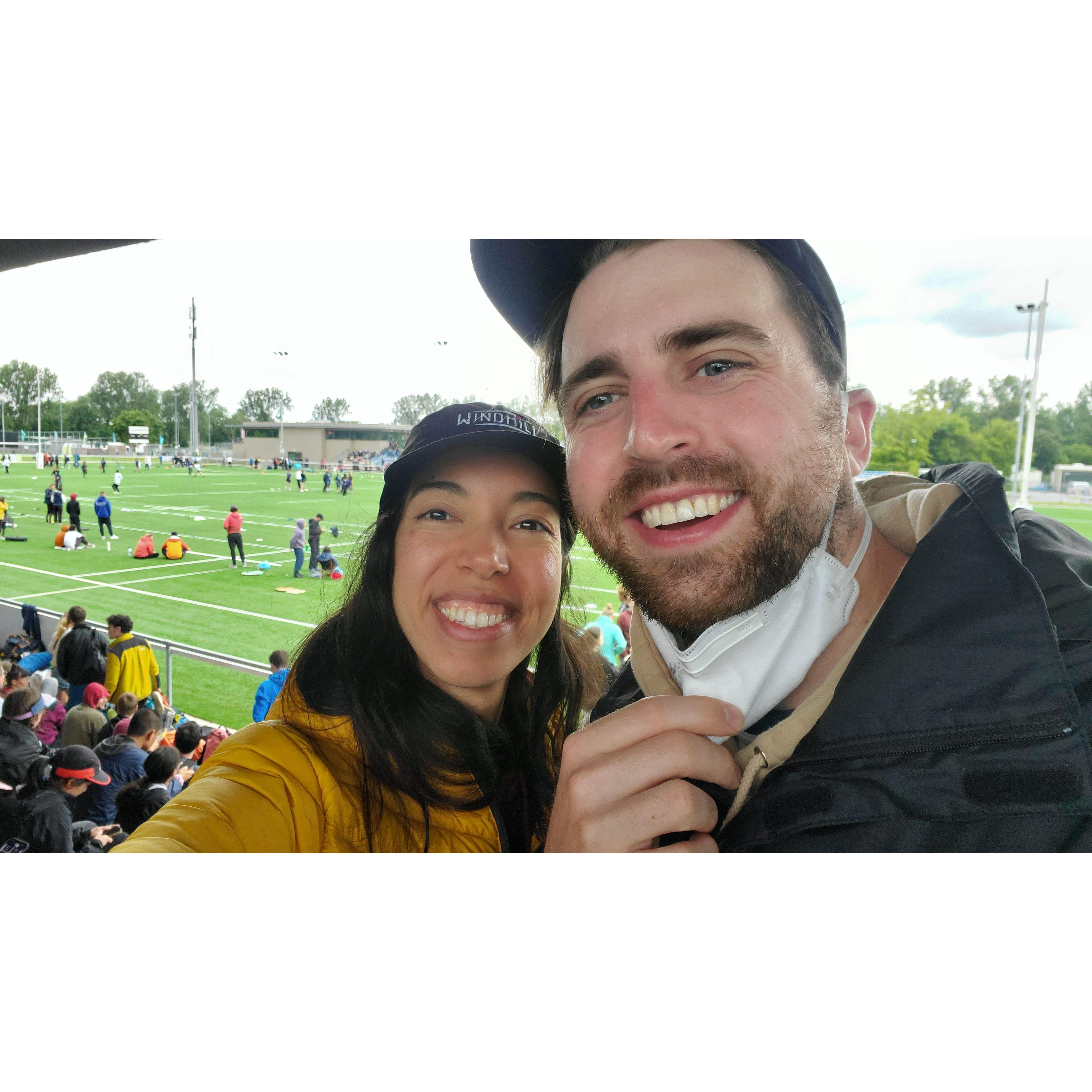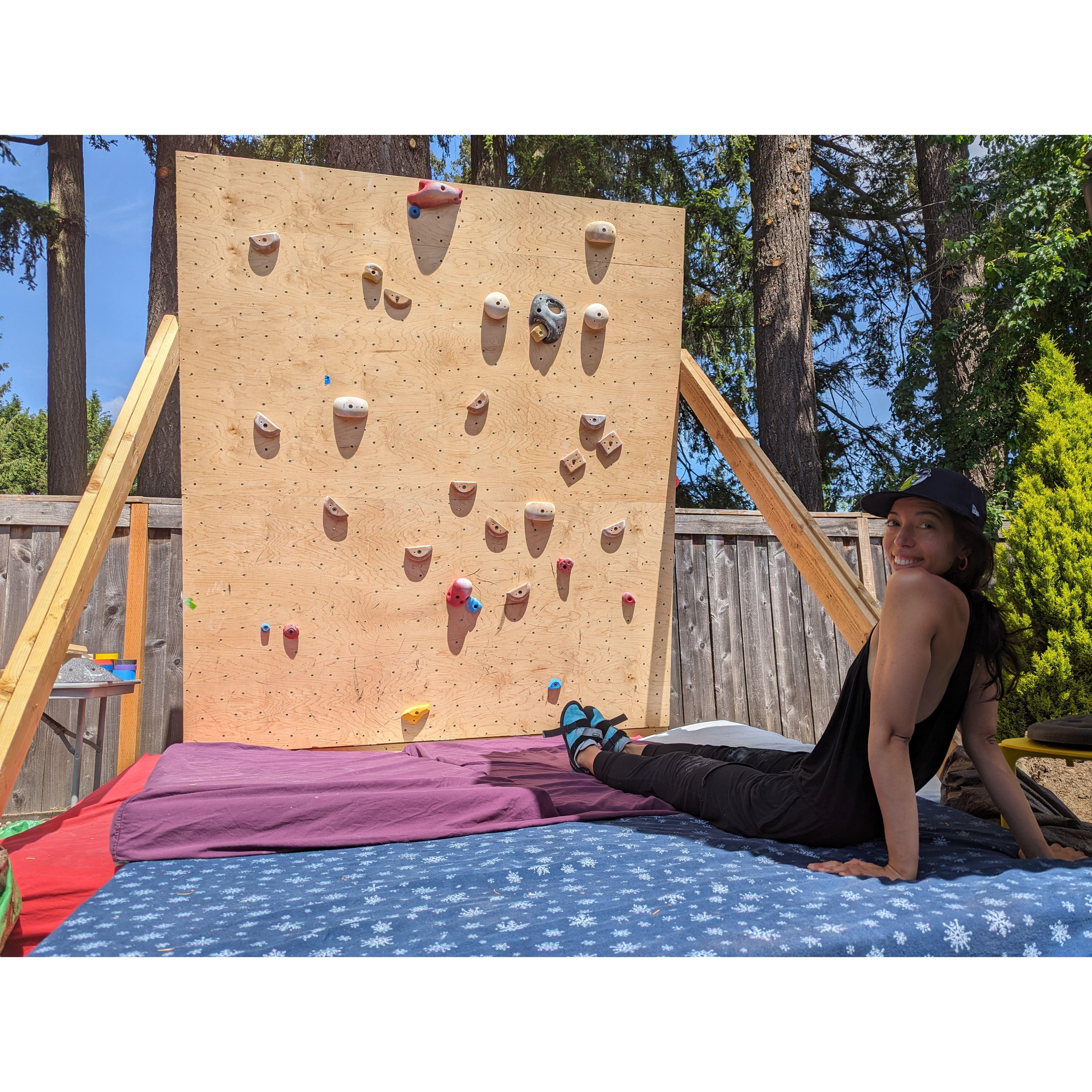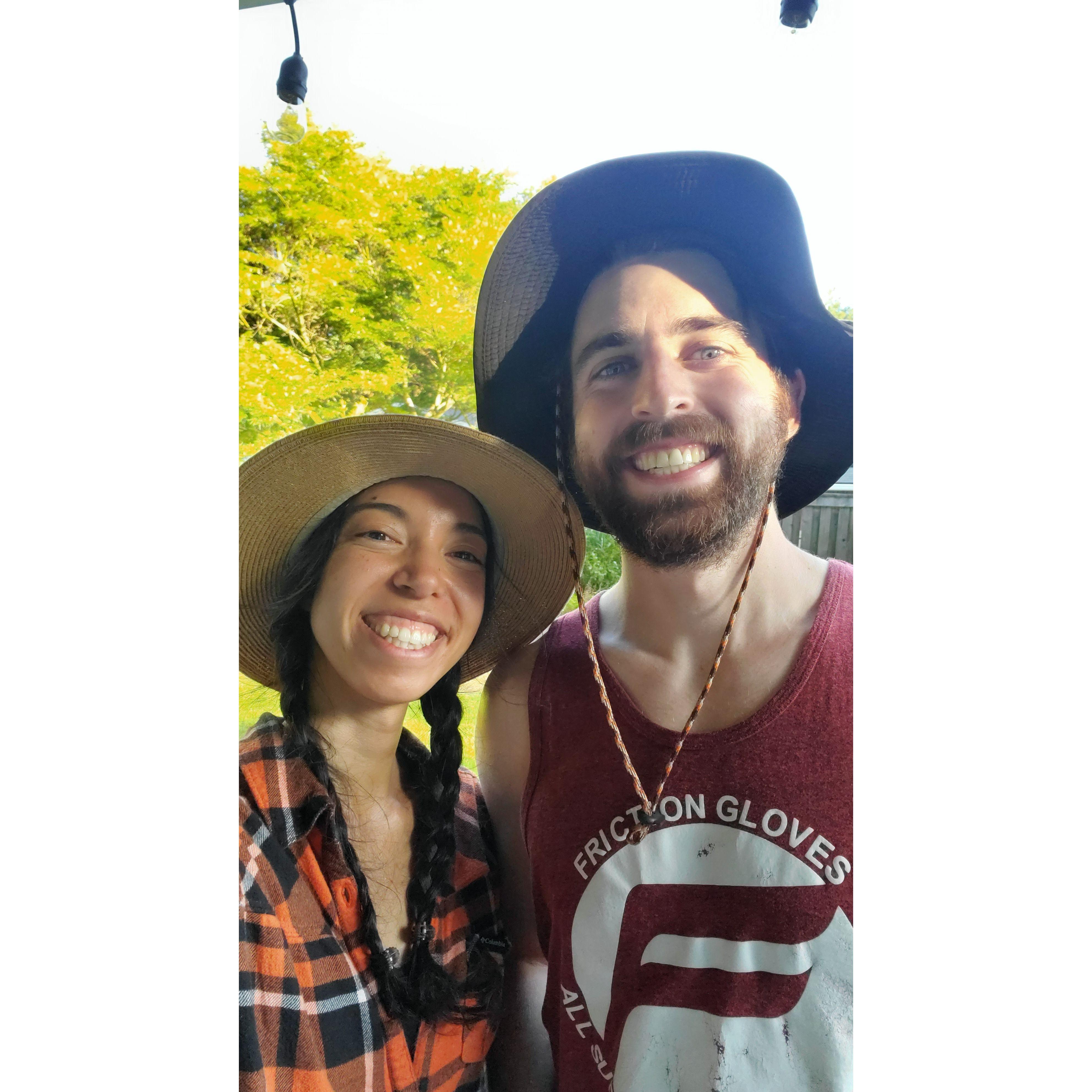 Our first photo together. Climbing at Ozone in the Gorge.