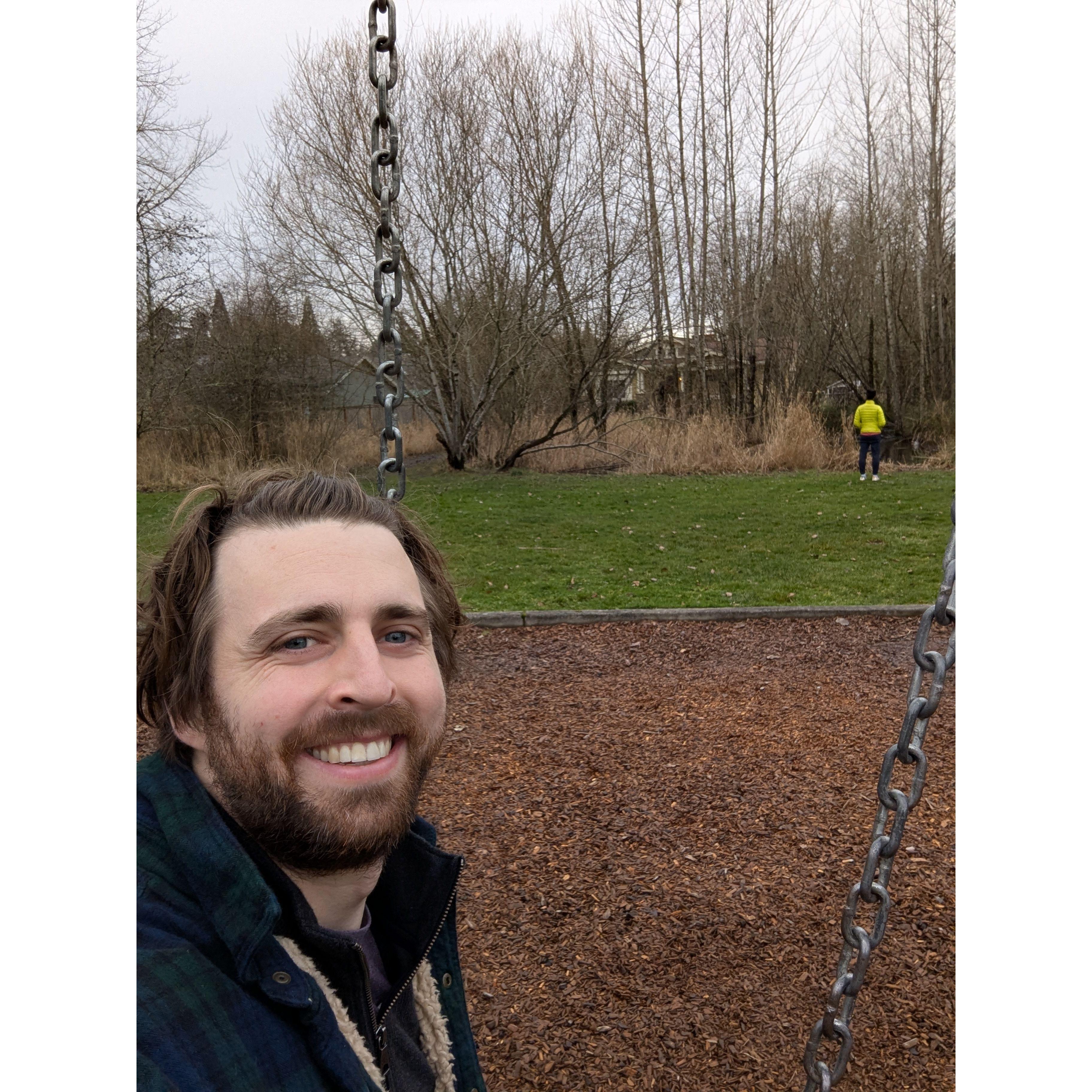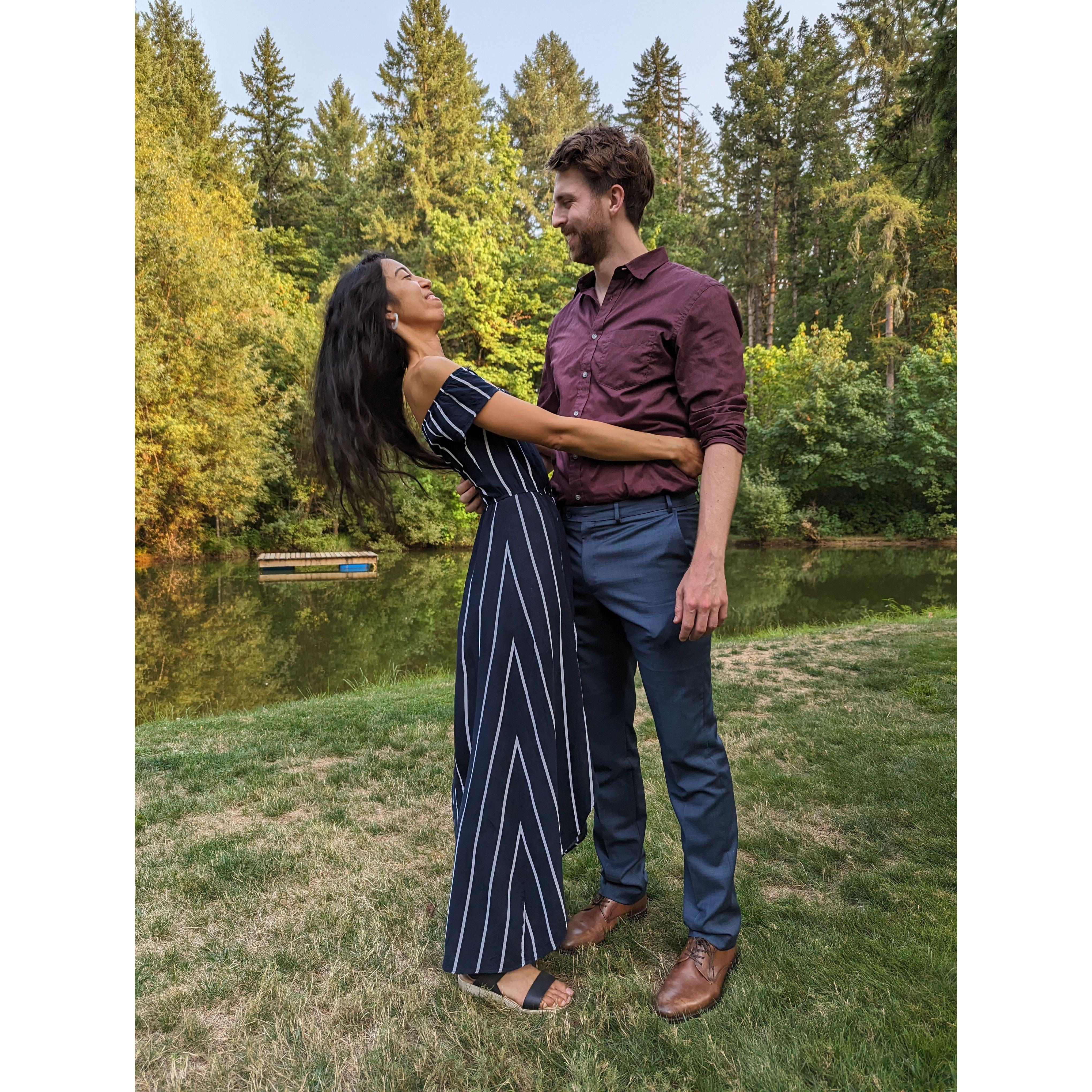 Posing for proposal photos after our engagement.