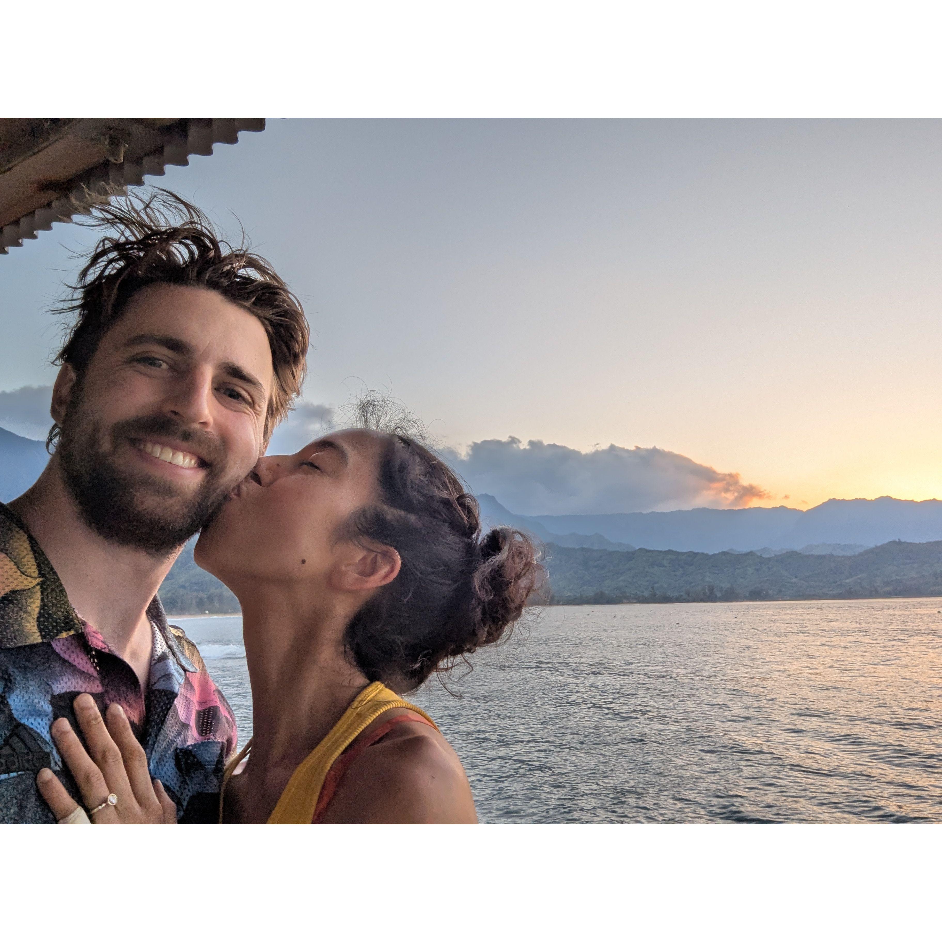 Moments before Austin proposed to Sophie in Kauai.