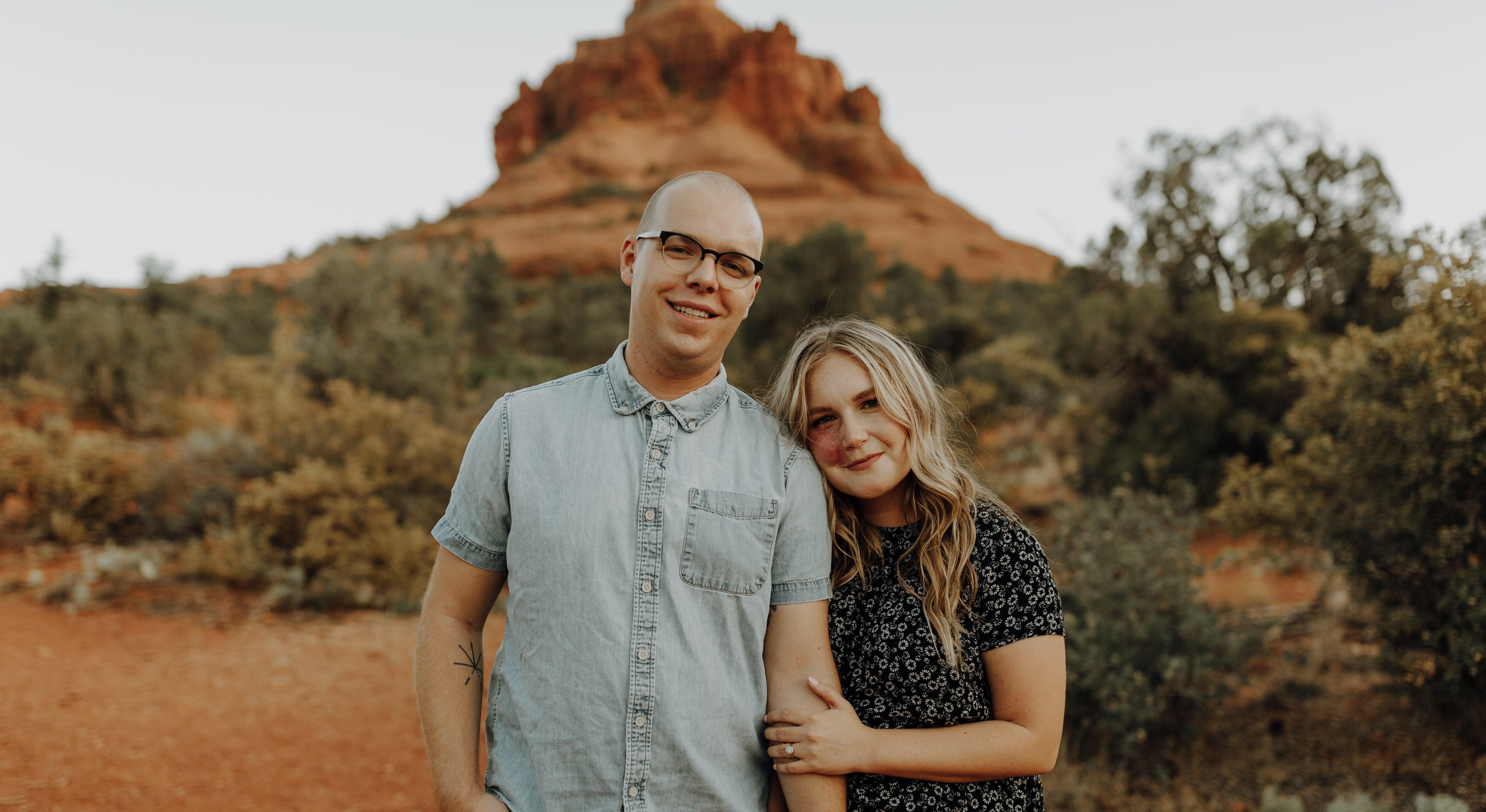 Ryan had been hinting at wanting to spend time with Sarah outside of church. Through their Facebook conversations they found that they both liked hiking. Sarah was actually in the process of training to hike across the Grand Canyon and so the two decided to go on a hike together. So who asked out who? We don't know! Ryan and Sarah chose to hike at Skyline Regional Park on an early Friday morning. They ended up hiking 10 miles without even realizing it because they were talking so much! The morning ended with breakfast at Waffle House. A perfect day. 10 days later Ryan and Sarah made their relationship official at the Starbucks in Verrado.