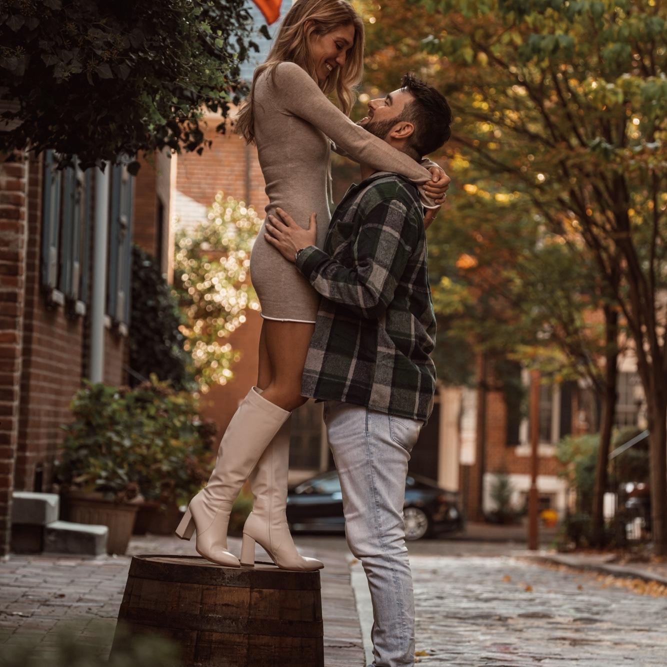 Kylie and Mike first met freshman year of college at University of Pittsburgh. Mike's dorm room happened to be across the hall from Kylie’s high school friends. Despite sharing mutual friends, Mike and Kylie never dated in college. Fast forward a few years, Kylie was living in Philadelphia, and Mike moved to Philadelphia for Medical School. Kylie's dating profile came up on Mike's account and he sent her a sweet message reminiscing about freshman year of college....... Kylie never responded (oops!). Thankfully the universe was not leaving this up to chance! That same night, Kylie and Mike bumped into each other at a bar in Philly. A fun summer night quickly turned into Kylie and Mike's love story. Over the last 6+ years of dating, Kylie and Mike added the best addition to their family, Rudy, and moved to Buffalo, NY (Go Bills!).