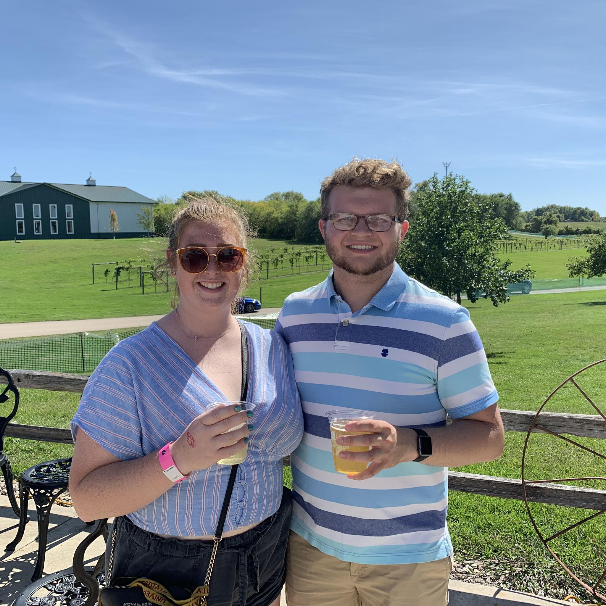 Sam and Sydney met on move-in day of Sydney's Sophomore and Sam's Freshman year at Morris. Sydney helped carry Sam's minifridge up to the 4th floor of his freshman hall (no elevator or A/C of course). Through similar extra-curriculars, Sydney and Sam were able to become closer friends until they were inseparable most days of the week. Sydney and Sam have enjoyed many adventures together including Sweden and Norway. Fun Facts: I've Traveled to Cuba Interests: Traveling, doggos, public policy, and craft beer Dislikes: IPAs, the Packers, and going slow in the left lane Favorite small talk conversation: Pets, beer, travel adventures, and weather (duh)