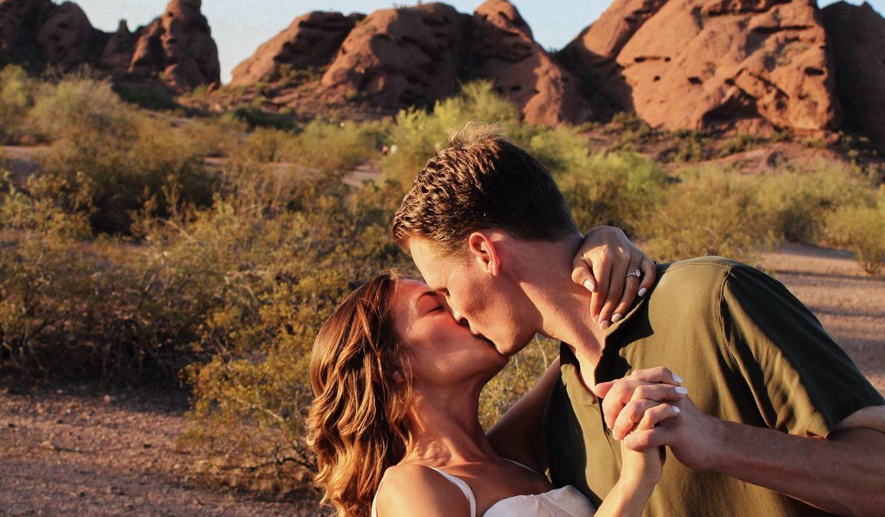We met completely by chance at a music festival—just two people in a crowd who had no idea they were about to meet their forever. From that day on, we’ve been inseparable. Our journey started in Detroit, where we built a life full of love, laughter, and amazing friendships. Along the way, we welcomed our pup Biggie, who’s been by our side through it all—from city strolls and cross-country moves to lazy mornings and late-night dance parties. Together, the three of us made a new home in Arizona, surrounded by sunshine, adventure, and even more incredible people to call family. Now, we are so excited to get married and even more grateful to spend this day with the people who mean the most to us. Thank you to everyone who’s traveled near and far—we (and Biggie, of course!) can’t wait to celebrate, soak up every moment, and dance the night away with all of you!