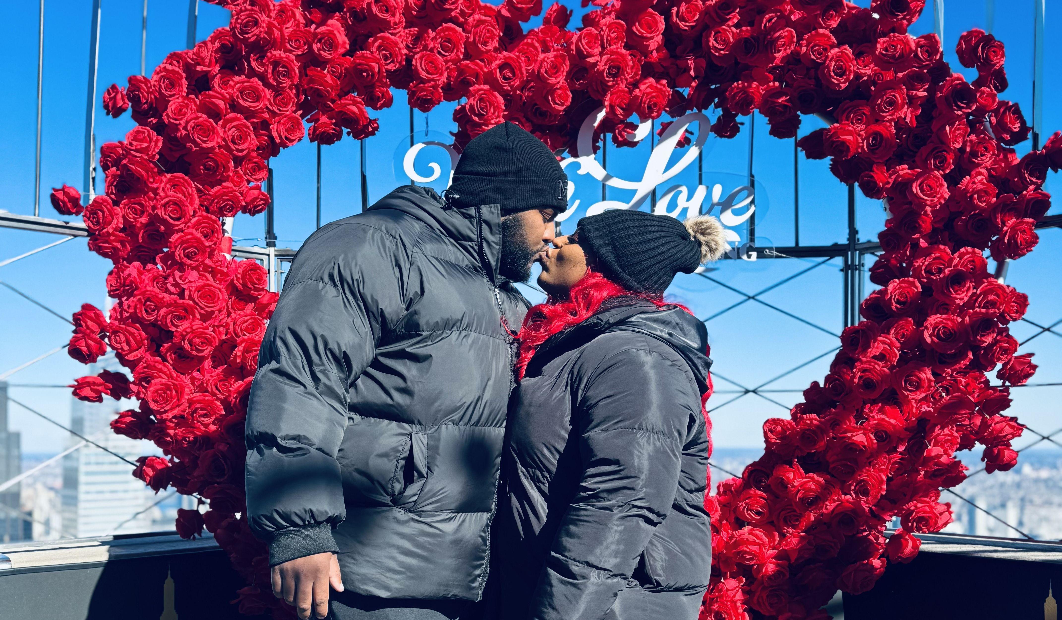 We were introduced by friends at the Grove Apartments in October 2017. We went on our first date in January 2018 to celebrate Alexis passing her first test in nursing school. We have been in love since then. Jordan proposed on February 14,2025 in Times Square.