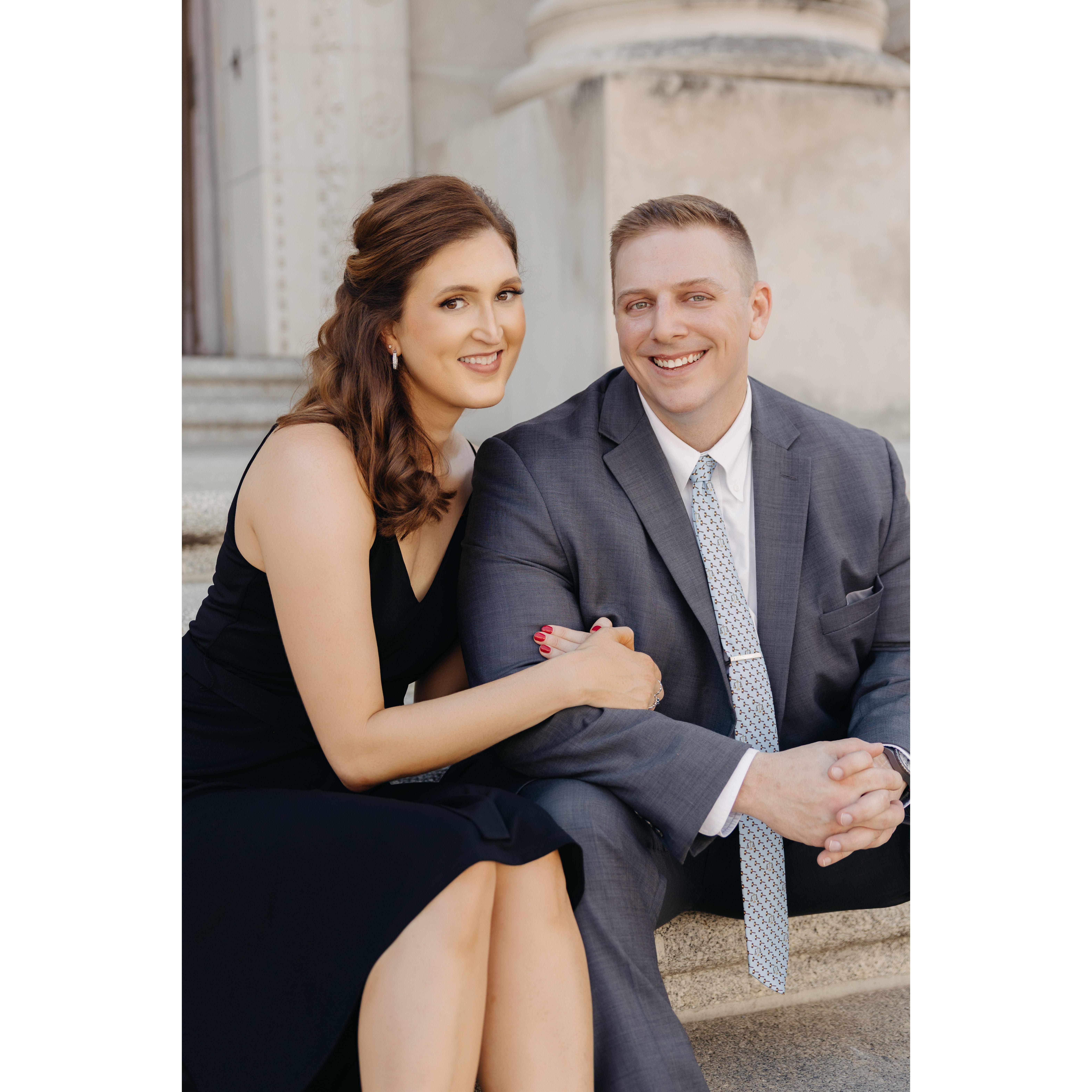 Post-engagement photo at Old South Church in Boston, MA