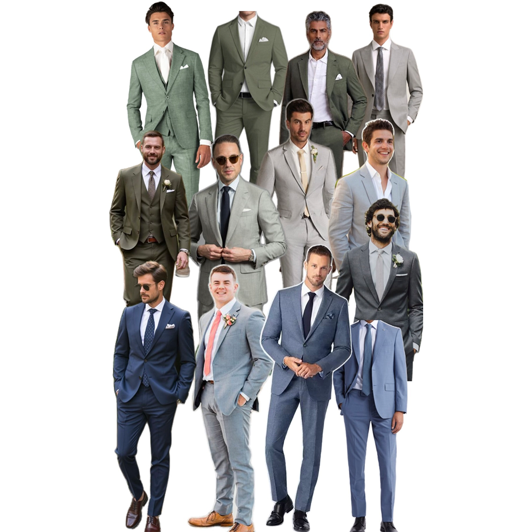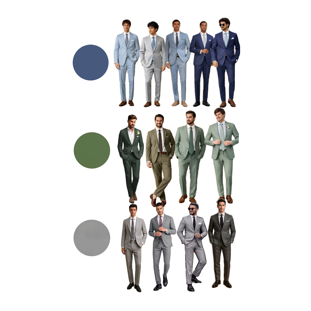 Men should wear formal attire in blue, green, brown, or gray. To help the groom and groomsmen stand out, please avoid black suits. Formal dress shoes are also expected.
