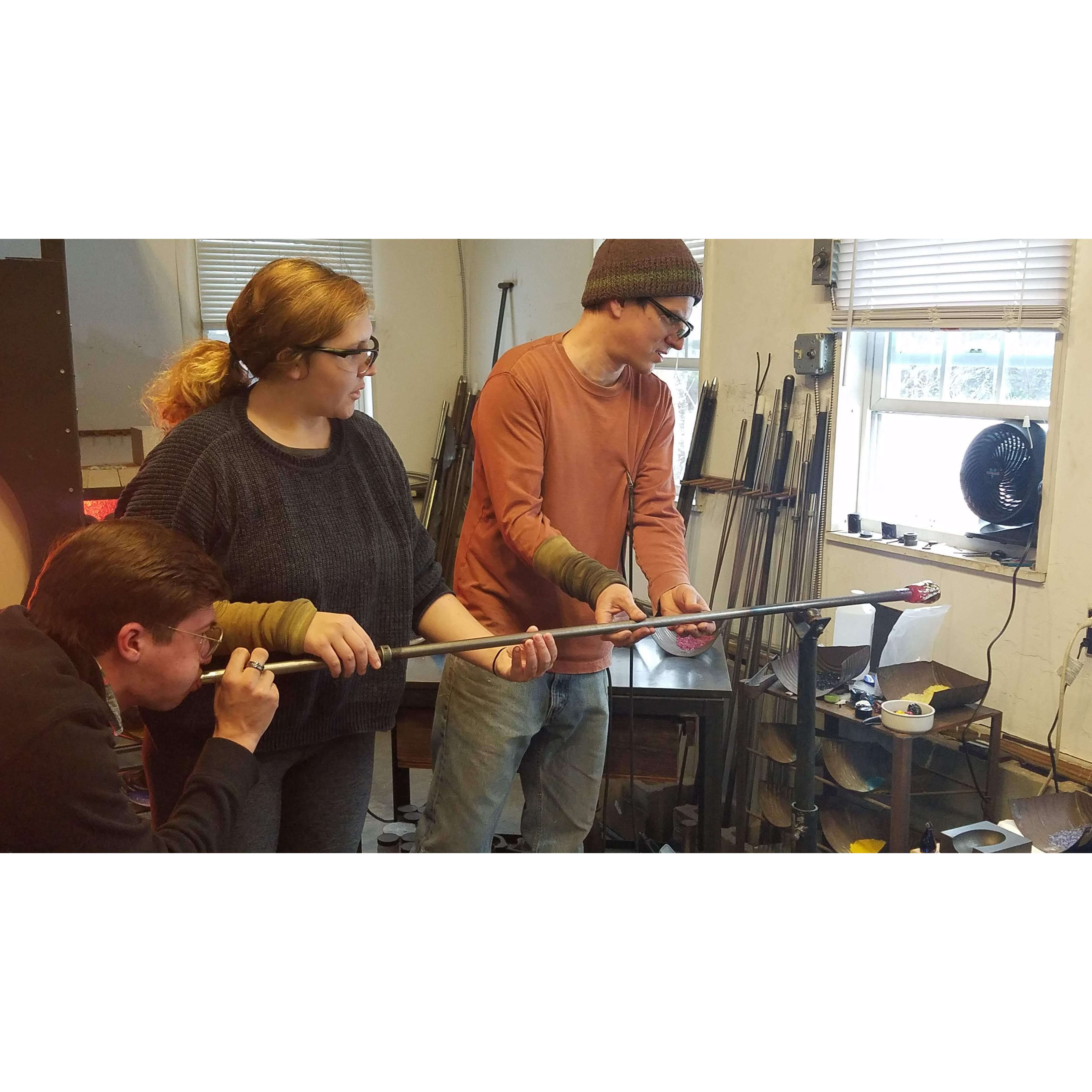 A blurry candid of the only way Steven can skate on ice
