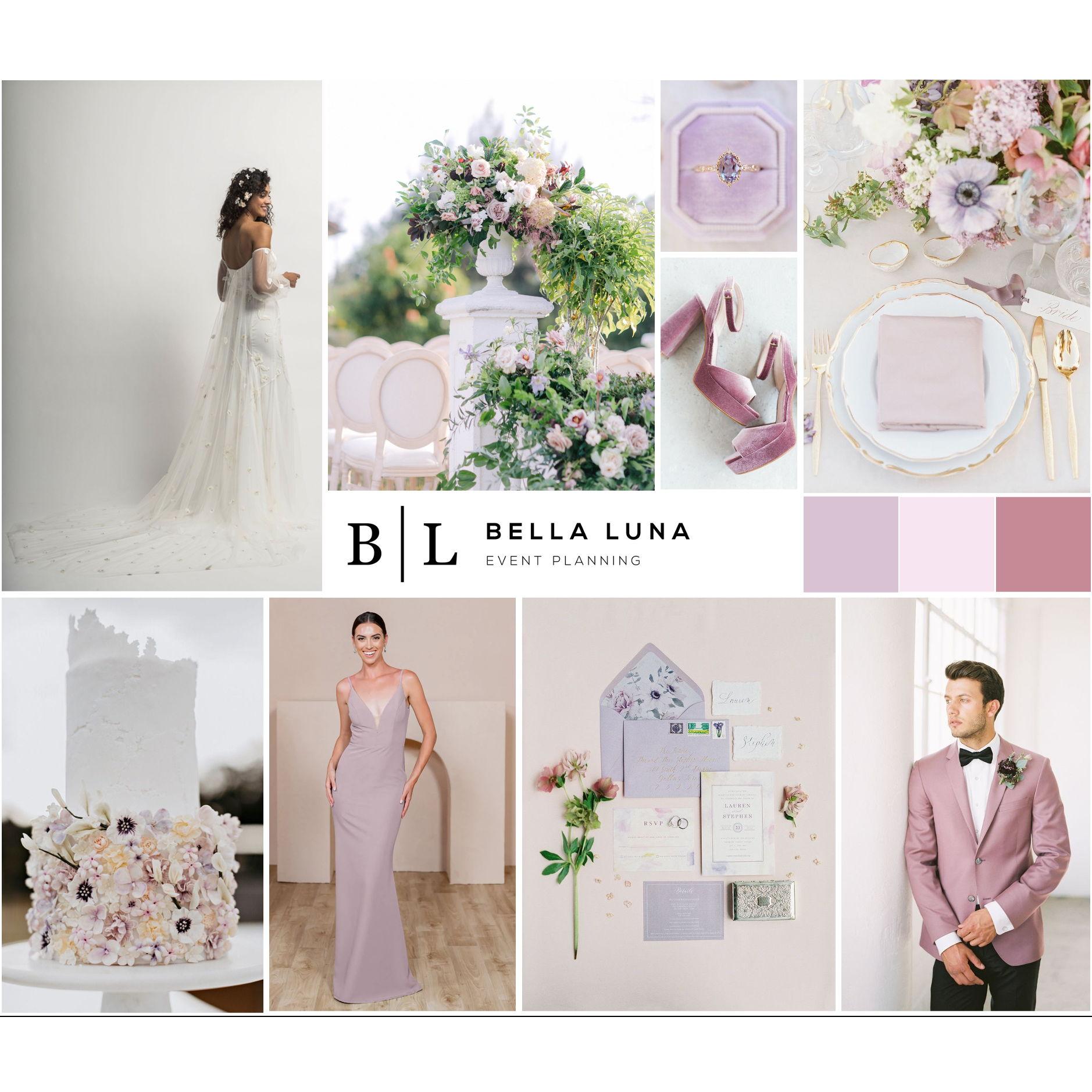 The colour scheme for the wedding is pink and purple. Here are some mood board ideas for the wedding colour scheme for those who want an idea of outfit colours.