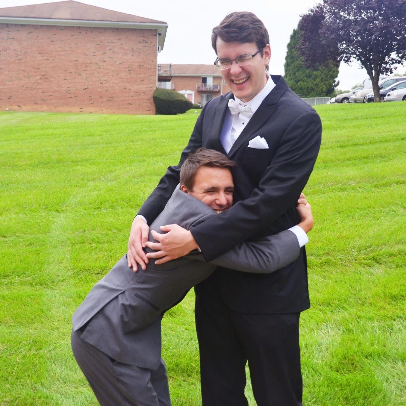 Cody and Brad met playing World of Warcraft in 2010. Since then they have also only seen each other in person 2 times! Once at the college theatre festival in Milwaukee and another time at Andrew Marten’s wedding where they both were best men!