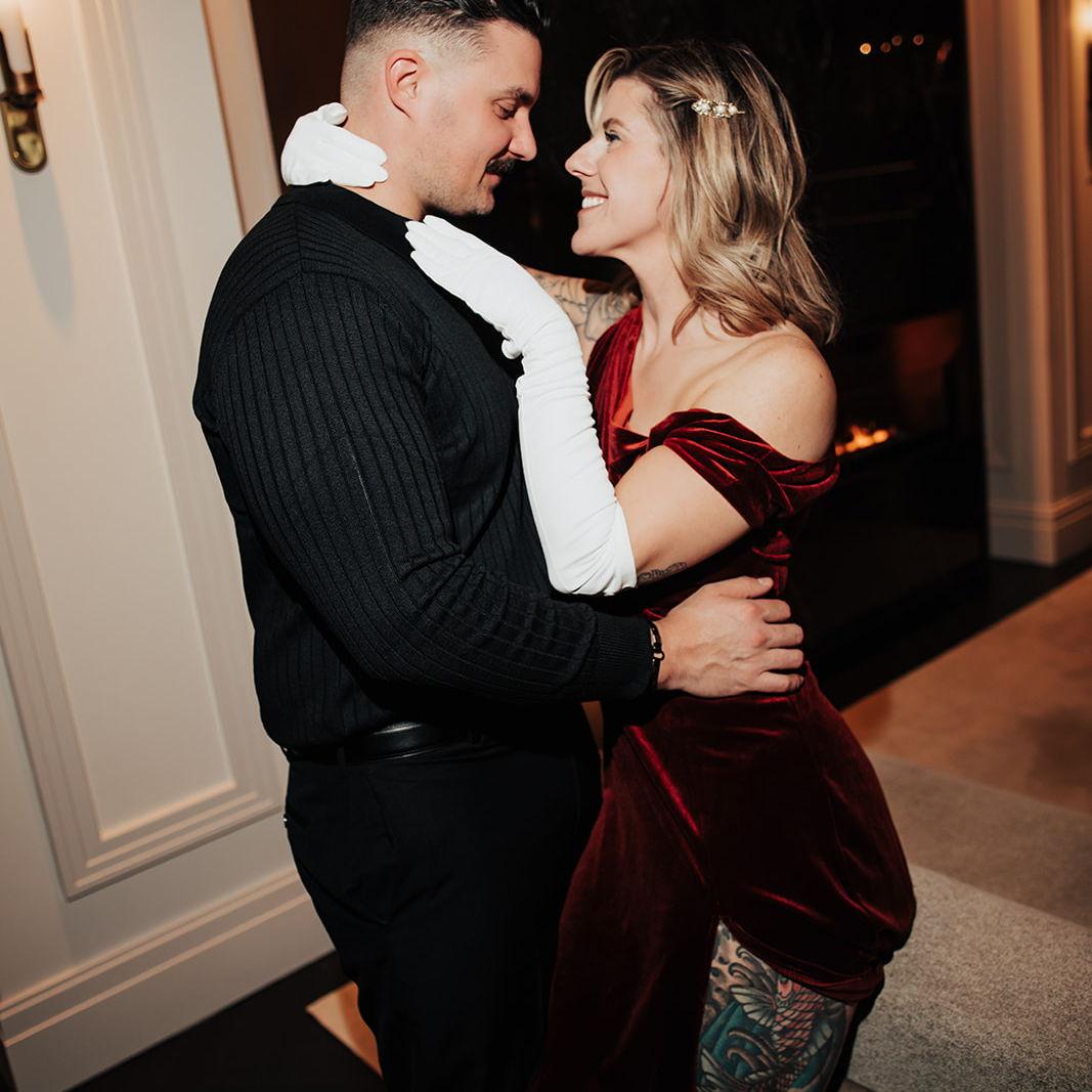 While onlookers sang 'That's Amore' out of the storefront windows