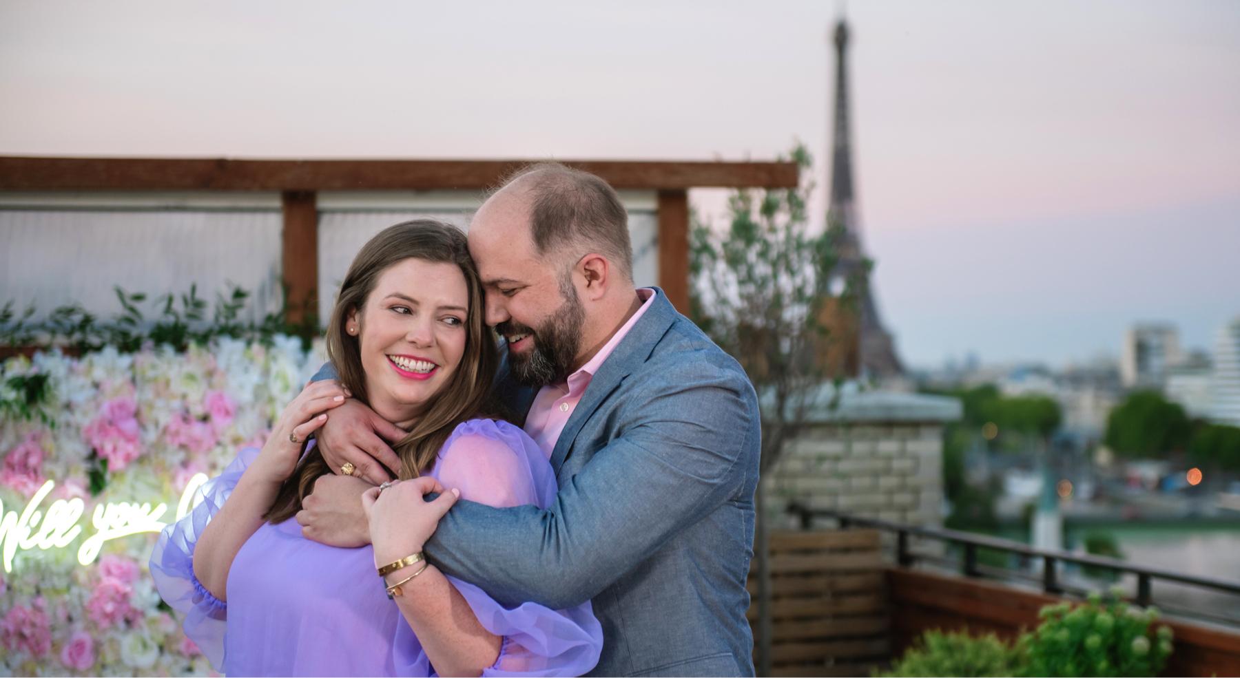 Having gone from 0 to 100 over the course of a single day in 2016, we took our sweet time getting to the next step, despite constantly talking about it from almost the beginning! France is my favorite place in the world and holds a very special place in my heart. We’d talked about going together for years before it was finally possible with lifted COVID restrictions. I planned the whole (very full!) itinerary, leaving very little room for Tye to sneak in additional activities. He mentioned that he’d found a “champagne tasting” that looked fun on Sunday night after our arrival in Paris on Saturday, and I had a pretty good idea of what might be coming given the vagueness of the idea and that this was his only contribution to the itinerary. Ha! But I never could’ve imagined the perfectly elaborate execution: blindfolded and led up to a rooftop overlooking the Seine and Eiffel Tower at sunset, with one of our favorite songs playing, flowers, candles, and a neon “Will you marry me?” sign, Tye asked me the easiest question I’ve ever heard. And true to his word, there was champagne! (There were also McDonald’s French fries. That’s a different story, but in our defense, it was late, it was convenient, and everything else was closed. McD’s in our formalwear pretty much runs the gamut of our relationship.)