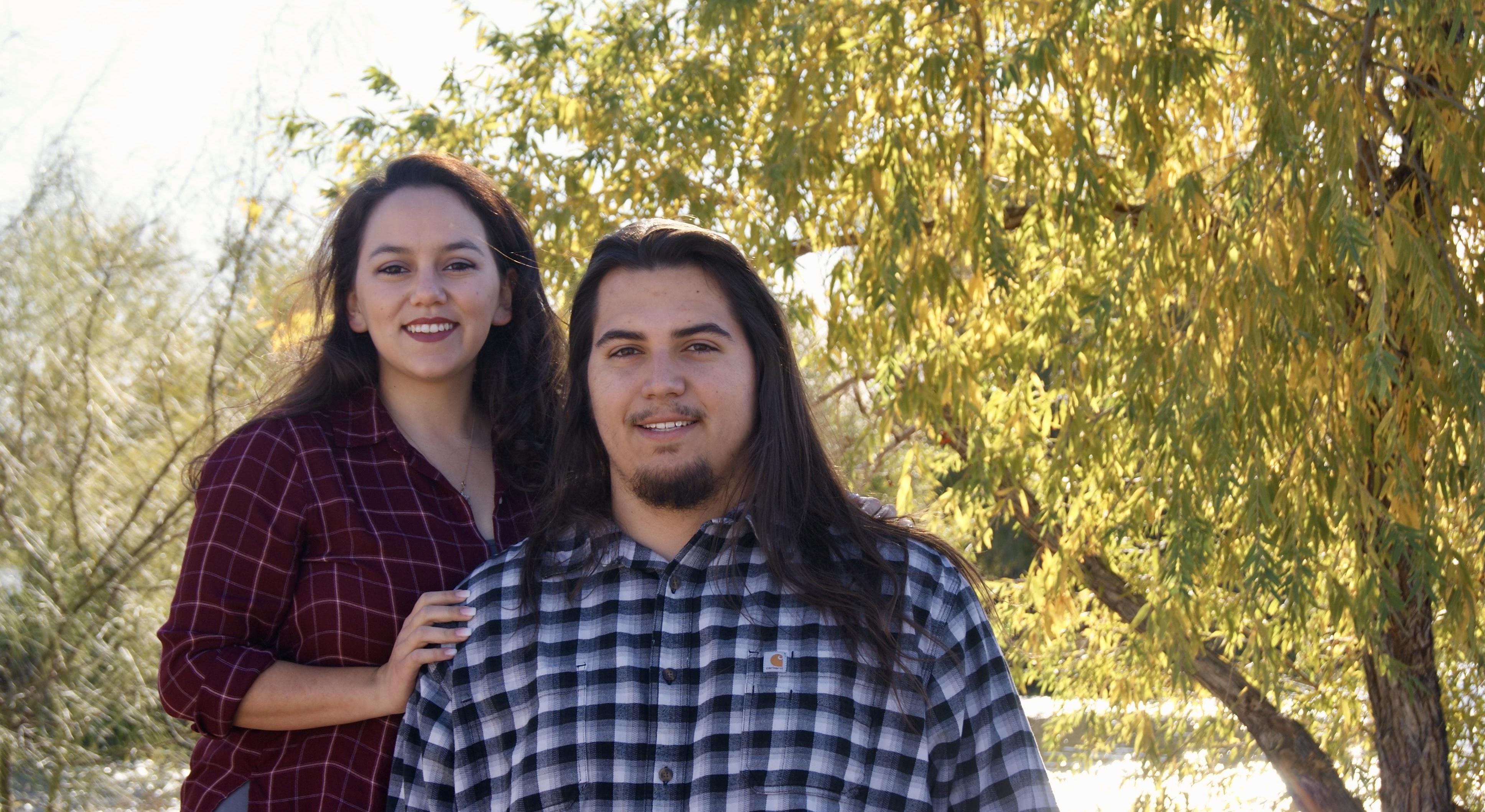 Mykal and I met when we were in high school. He was a junior and I was a sophomore. We had the same Spanish class. We had assigned seats and it just seemed to work out. We didn’t really talk outside of class. While in Spanish class we had to go to a made up Quinceanera, Mykal and I both had to attend. Anyone who knows Mykal knows that he doesn’t like to dance. Well I made him dance with me. It was very funny and a little awkward but it was fun, for me at least. The following year, we started talking more and more after homecoming. Then, on November 16th 2014, Mykal and I went to the movies. We saw St. Vincent, that day we started dating. The first time I spent time with Mykal and his family, after we started dating, I went over to his house. We were sitting in the living room and Mykal and his mom were saying something to each other. The word shekel was used and I lost it. I was in the middle of drinking POG and I had just turned my head. When I laughed I totally spit my drink on Mykal and got it in his mouth. After Mykal graduated he moved to Arizona and I moved back to South Carolina. We spent a year apart. After I graduated high school, I moved to Arizona. A few years after I moved here, I joined the military and Mykal supported me throughout all of it. On May 30th 2019 Mykal and I went to Fossil Creek. We walked all the way up to the waterfall then we went and found a small spot for us to sit at. Mykal proposed to me while we were there and it was very special and romantic. On our wedding date, November 16th 2021, we will make 7 years of being together.