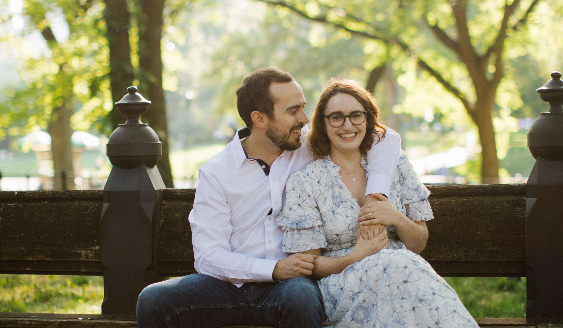 Brad and Taylor met at least three times before their first date. The first time they met, Taylor was sitting at the bar at DTUT (RIP) with Chloe (Bridesmaid) and Brad walked in with Tom (Best Man) and several loud, drunk people (Tom's friends). Brad said "hello," and Taylor was not interested. The second time they met, Taylor was sitting at the bar at DTUT (you may notice a trend here) and Brad came in on his own. Brad stole some name tags from a church event taking place at the bar and brought a pair over to Taylor. They gave each other fake names and flirted. Brad told Taylor he was an amateur anesthesiologist with a side gig as a basset hound breeder in his studio apartment. He didn’t ask for Taylor’s number this time, which was probably for the best. The third time they met, Brad came and sat next to Taylor at—you guessed it—the bar at DTUT. They spoke for an hour or so and, as he got ready to leave, Brad said, “I bet if I asked for your number you wouldn’t give it to me.” Taylor said, “Try it.” And he did. Five years, law school and a global pandemic later, on October 9, 2022, Brad, Taylor, and Franklin (their dog) went for their usual walk around the reservoir in Central Park. Taylor noticed that Brad was wearing a jacket that had approximately 100 pockets, but didn’t think anything of it at the time. As they walked, some strange things started happening. First, Brad started reminiscing about old dates and fun times they’ve had in the park. Then, Taylor noticed that he wasn’t taking off the jacket of a million pockets even though it was 70 degrees. Finally, Taylor noticed that Brad’s hands were more clammy than usual. When they got to the top of the reservoir, at the point where you can see across the city, Brad asked Taylor to step off to the side and admire the view. As Taylor was pointing out her office, Brad got down on one knee. Taylor turned around and started hysterically crying. When Brad asked if she would marry him, Taylor stopped crying just enough to say "of course." And they lived happily ever after.