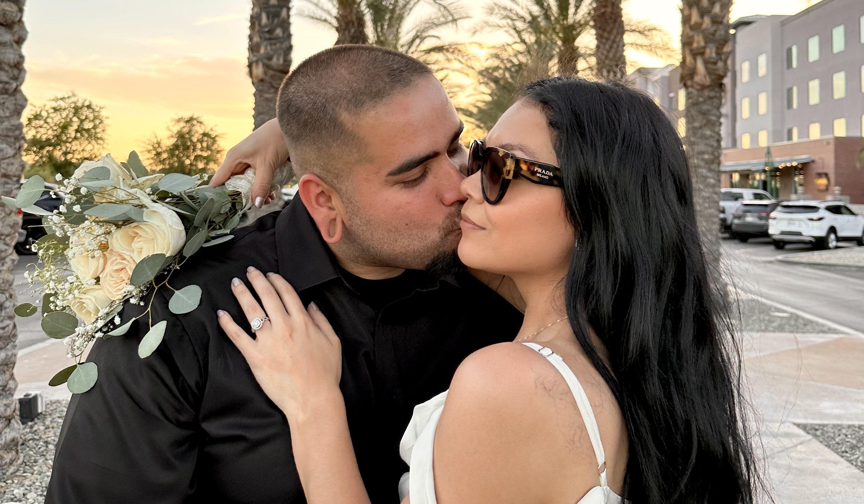 Manny and Jocelyn met in 2013 for the first time at In-N-Out when they ran into a friend and didn't think much of it. Little did they know they would meet again at a friends birthday party. There wasn't much conversation going on because of the loud music but they caught each others eye. Even though they had already met once before, they followed each other on Twitter. A lot of mentions happened but too much time went by and Manny wouldn't make the first move. So Jocelyn decided to shoot her shot and she didn't miss. She told him, 'we should hang out sometime, text me'. So he did, he decided he would take her to Mc Donald's for some cookies. Jocelyn was 20 years old and Manny had just turned 18. Although he had no job, he spent the little amount he had on some cookies for her that night. Jocelyn didn't think Manny was that into her that night, since she made the first move she expected him to make the next move and at least try to kiss her, but he didn't. She was so confused that she asked him, 'do you even like me?'. Manny said he didn't want her to feel uncomfortable since it was their first time seeing each other alone. This made Jocelyn see him completely different, he was a breath of fresh air to her. That night was just the beginning of their love story. As the days went by they became inseparable. 3 months later Manny asked her to be his girlfriend. Things were going great, so 2 years later they decided to take the next step and move in together. They enjoyed each other as boyfriend and girlfriend to the fullest. There were ups and downs but they knew the end goal was always to stay together so they fought for each other always. There was nothing big enough to come in between them. So they decided to start a family. 7 years later Jocelyn became super sick, not knowing what was going on with her it hadn't crossed her mind that she might be pregnant. Her mom told her just take a test, after a week of feeling sick she did. The moment that positive sign showed up, everything changed. Violet was born September of 2019 and with that so much more love grew. Manny decided to make it official that Christmas Eve night and asked Jocelyn to marry him. But the love didn't stop growing, Isaiah was born December of 2020 and things just felt complete. They had their little girl and little boy, the perfect pair. Little did they know God was not done blessing their family. Ava was born August of 2022, breaking the tie making two girls and one boy. They're so excited to start the next phase of their lives together and can't wait to celebrate with you in October!