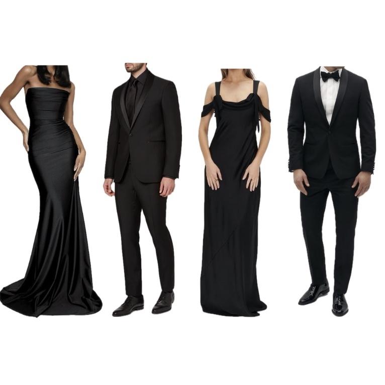 We would like all of our guest to wear ONLY black attire! Black Tie Optional Black Floor length dresses Formal Black Suits or Tuxedos (White shirts with suits are okay)