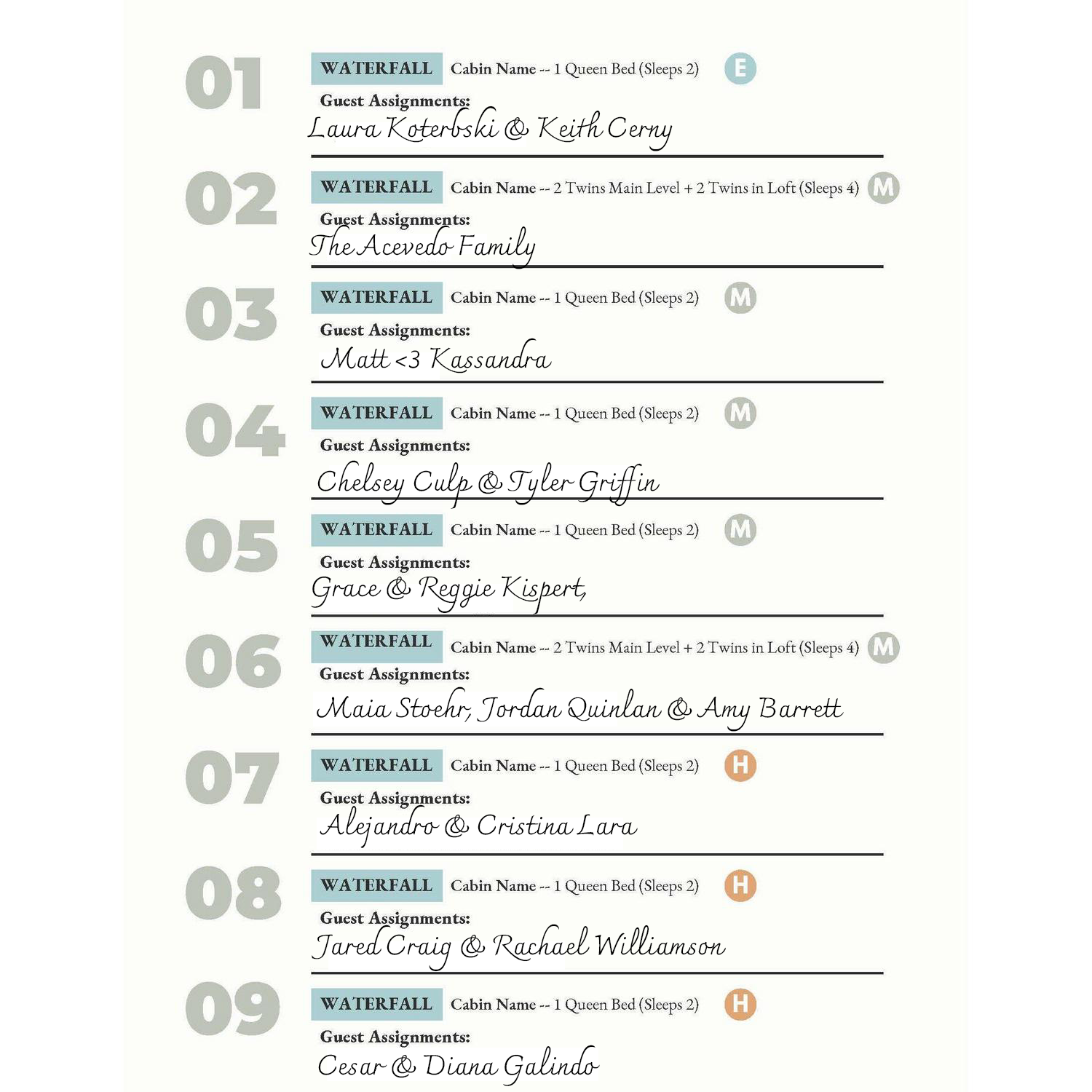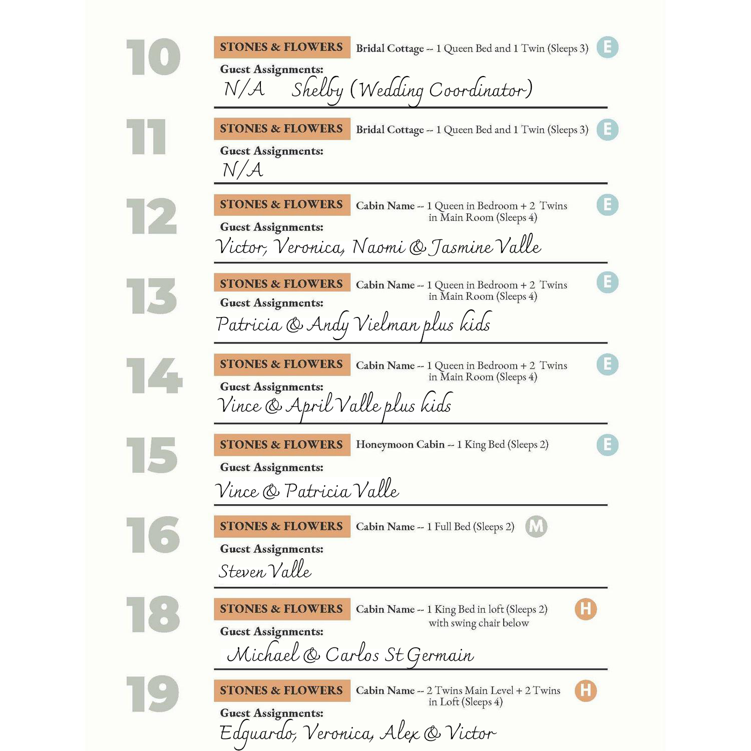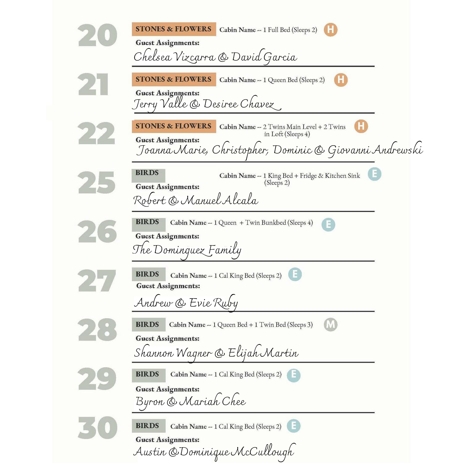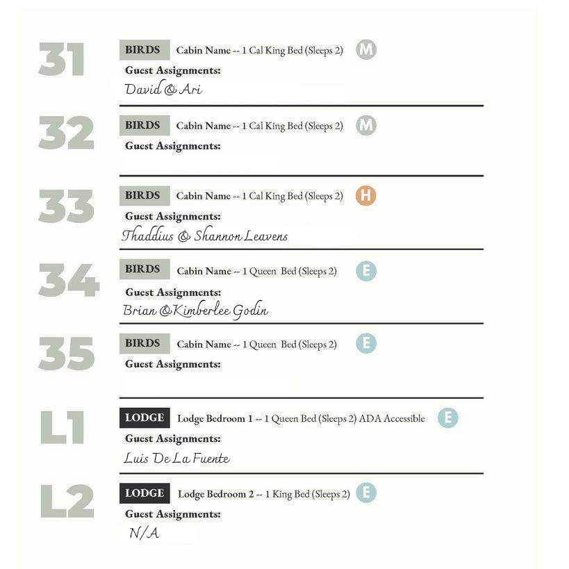 Cabin Assignments