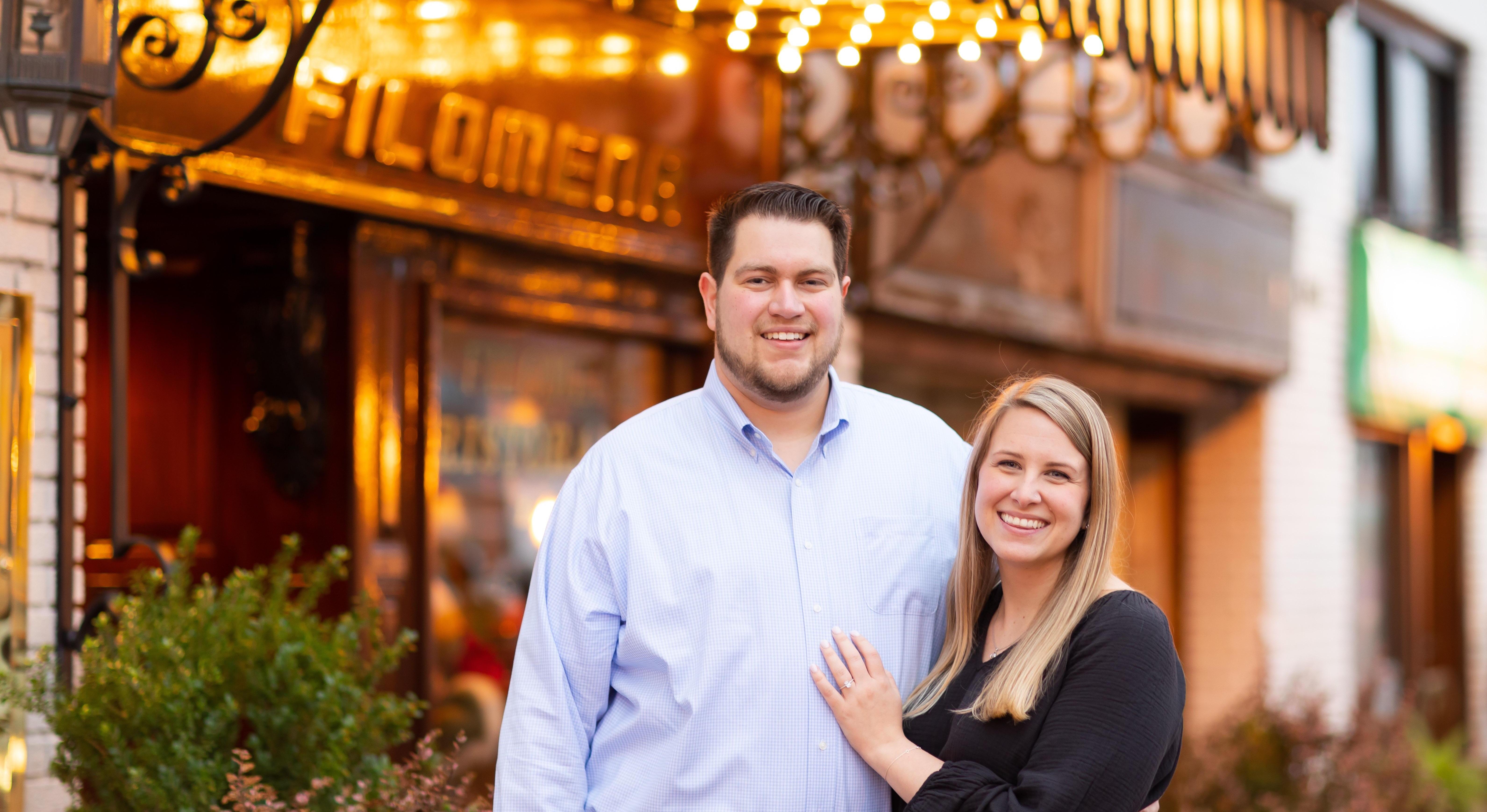 Frank and Amanda met in Summer 2018 when they both started working at Catholic University. Their relationship as coworkers changed in Fall 2019 when Frank invited Amanda over to watch a New York Rangers hockey game. From there, they began spending a significant amount of time together and Frank asked Amanda on their first official date to Georgetown on November 21, 2019. After a couple of weeks spending time together, even before their first official date, Frank and Amanda knew that their love was unlike anything else they had ever experienced. This love was special, one they knew would last forever. By that first date, Amanda already knew that she was completely and totally in love with Frank. It seemed so silly to try and pretend that she wasn’t feeling what she was feeling, so on their first date at dinner Amanda looked at Frank and said, “what if I more than like you?” He smiled her favorite smile and replied, “what do you mean?” Amanda smiled the biggest smile back and said, “I love you, Frank.” He immediately said, “I love you, Amanda.” That night their whole world changed because they knew they were with the person they’d spend the rest of their life with! One year to the date from that first date in Georgetown, on November 21, 2020, Frank took Amanda back to the same place where they first told each other "I love you," got down on one knee, and asked her to spend her life with him. It was the easiest question that Amanda ever answered, and she replied, "YES, YES, YES, YES, YES!" Now, they are getting more and more excited each day as they prepare for their marriage! They cannot wait to celebrate their love with their family and friends!
