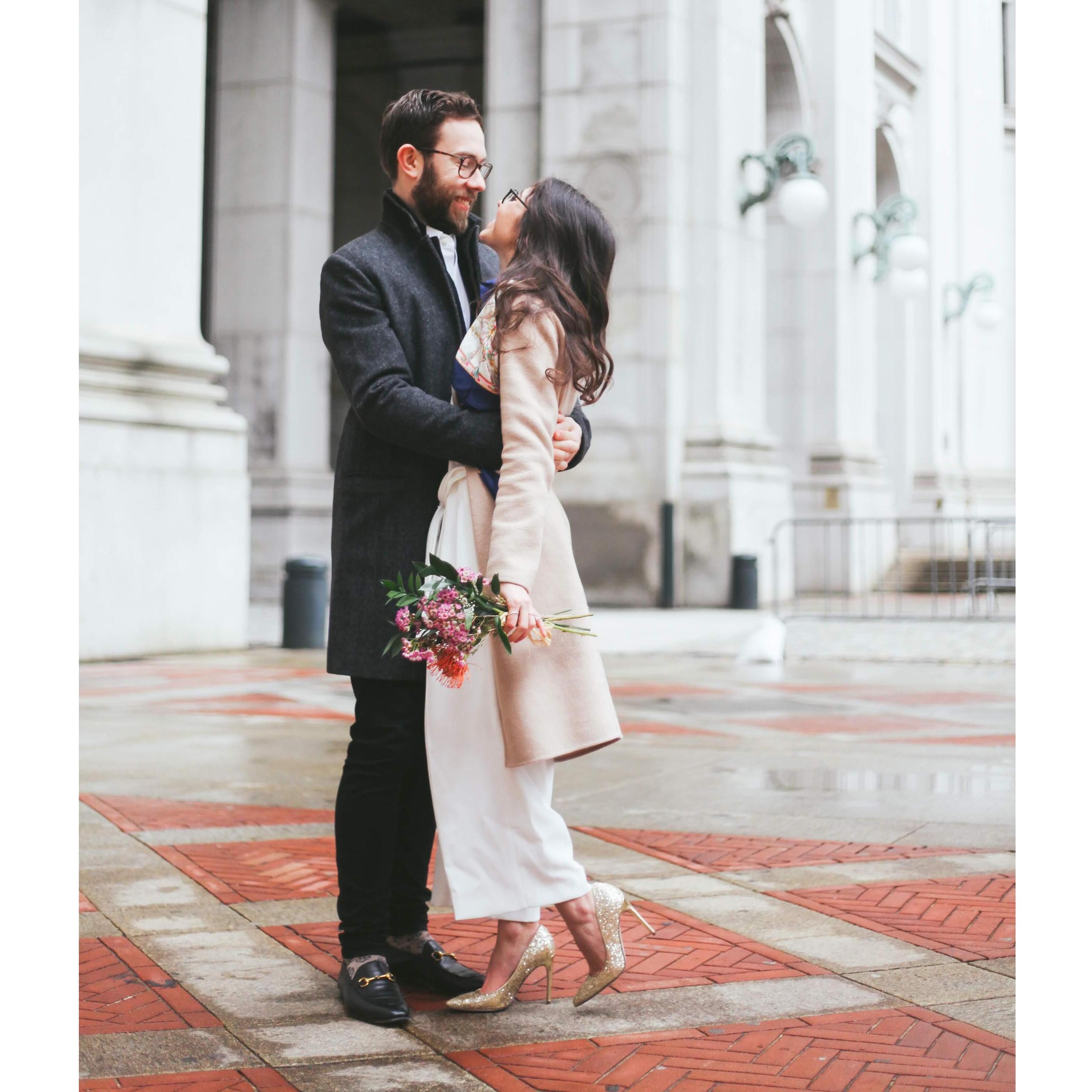 Waiting for our number to be called at the courthouse