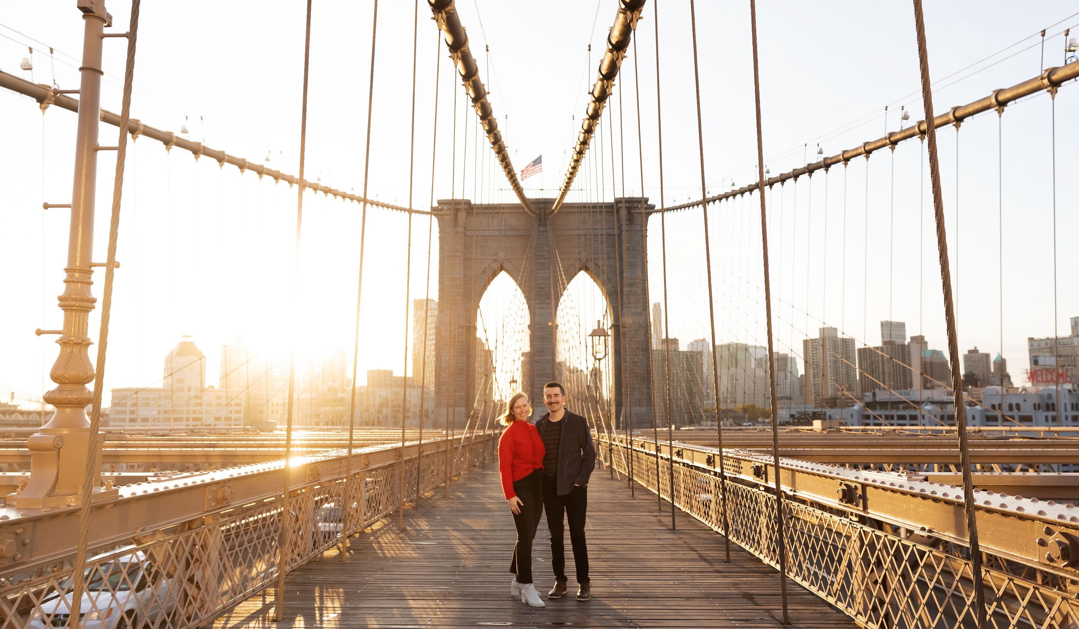 Tom proposed on Memorial Day Weekend - a holiday weekend that has unexpectedly held a lot of meaning for us. We moved in together the previous Memorial Day and our wedding will be on the holiday weekend in 2023! Tom proposed in Brooklyn Bridge Park, at "our spot" - one we frequently visited during Covid days when we needed some fresh air and sense of normalcy. The process of getting Katie to Brooklyn Bridge Park that evening wasn't the easiest (it had rained all day, so there was a lot of questioning around why we can't just Seamless and sit on the couch!). Nevertheless, Tom persisted with little to no detail other than "get in the Uber, let me have this." It was the most special moment, made even more so by Katie's best friend Lindsey hiding inconspicuously in all black behind a nearby tree to snap the crucial pictures.