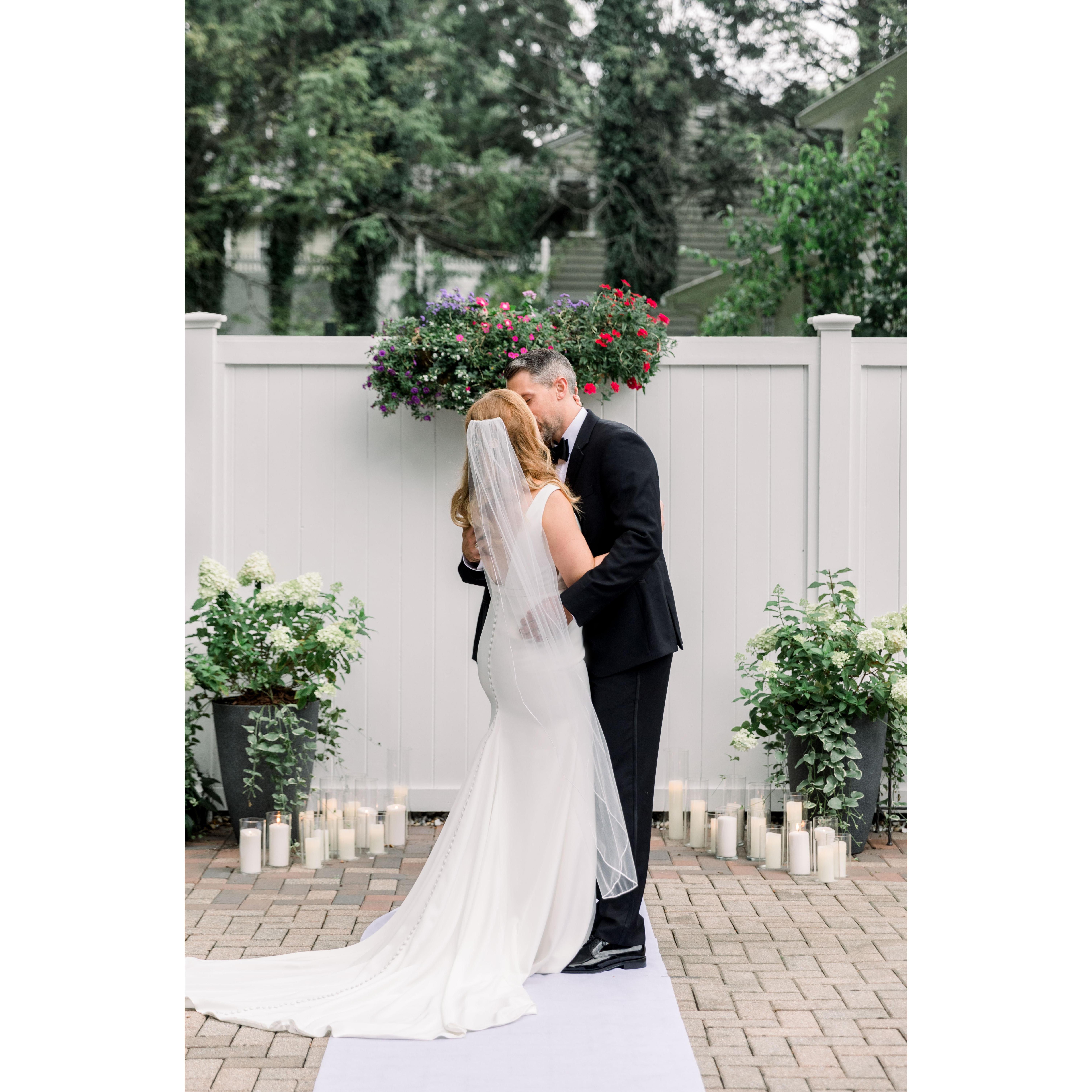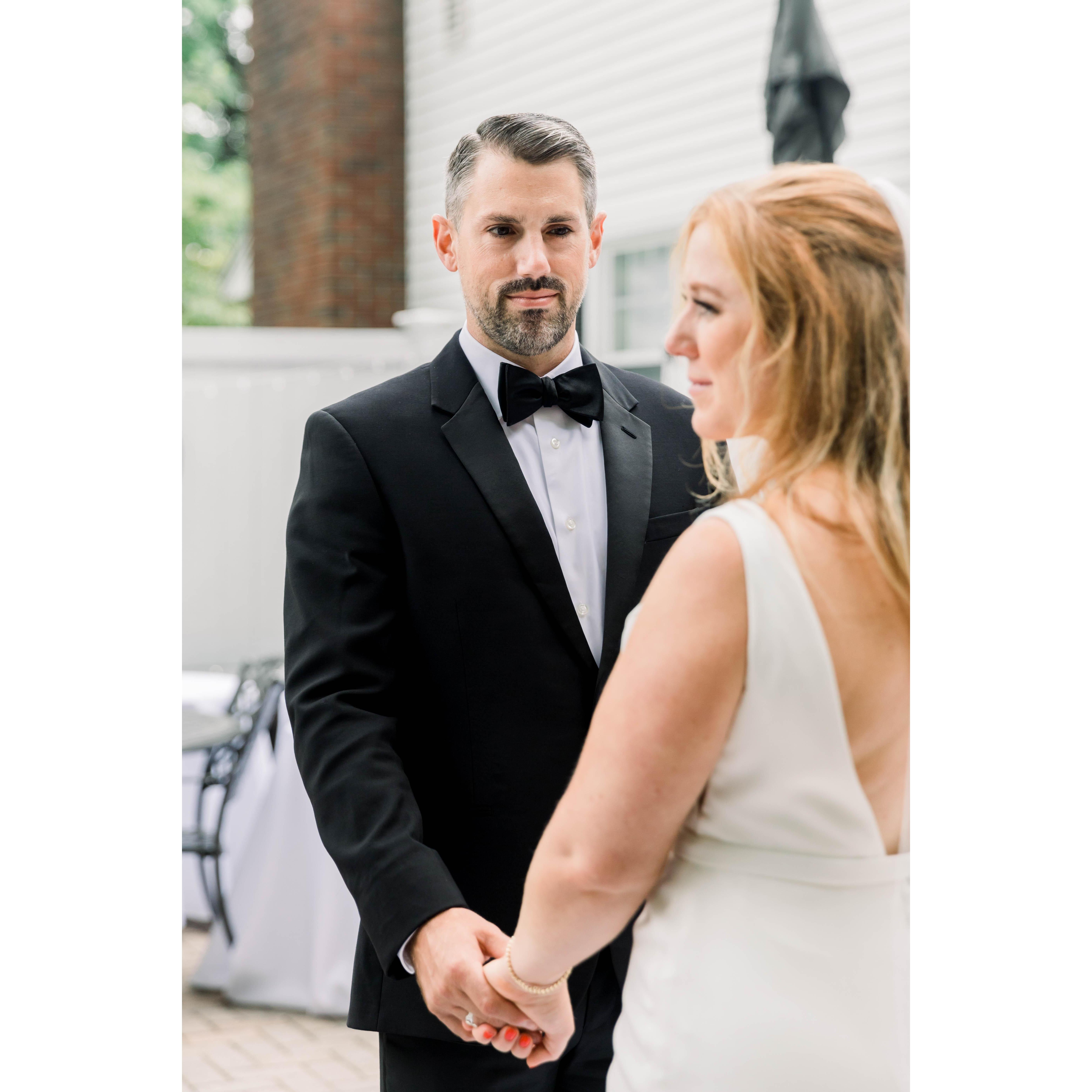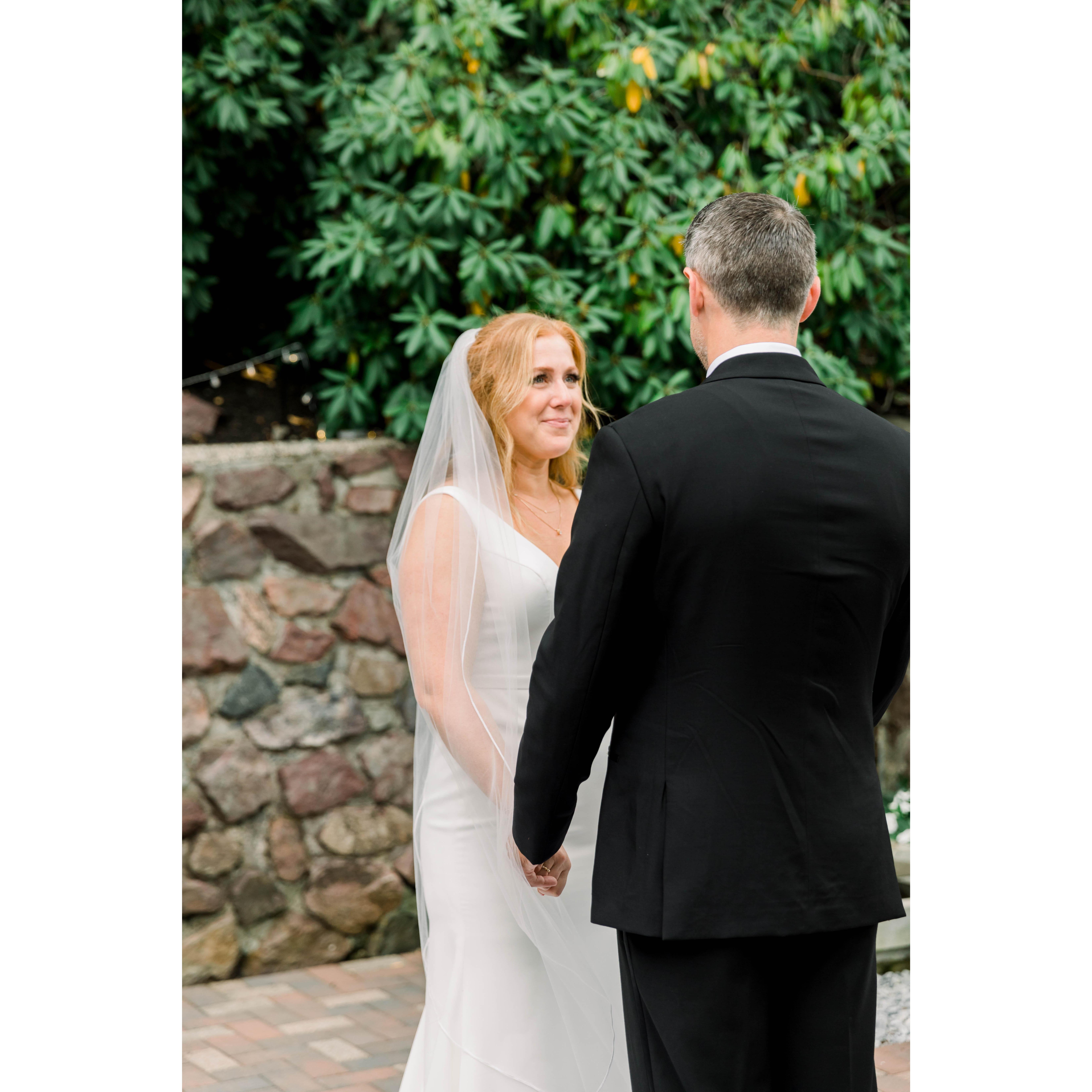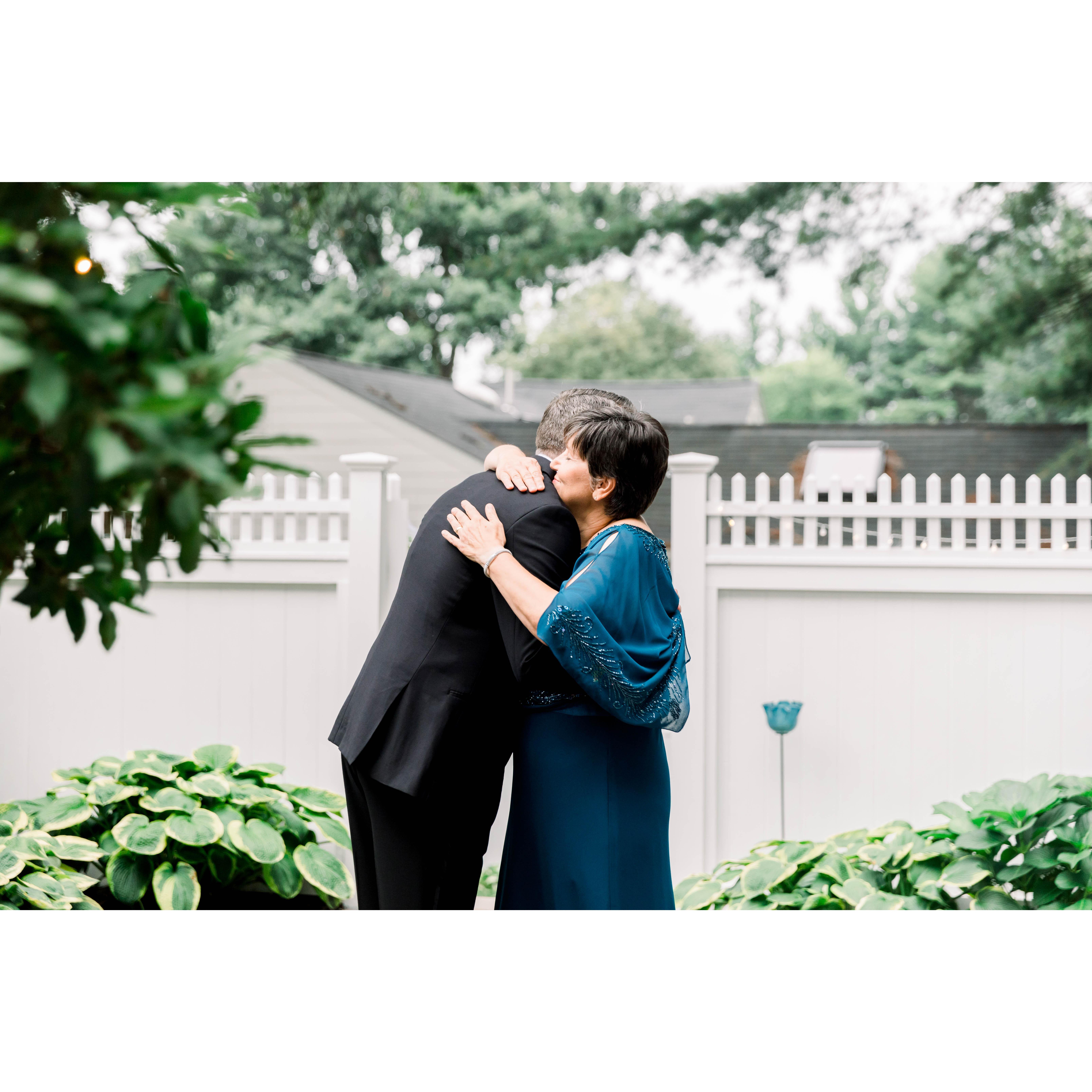 Katie and Tommy had their "first look" in Katie's parents' backyard where she grew up.