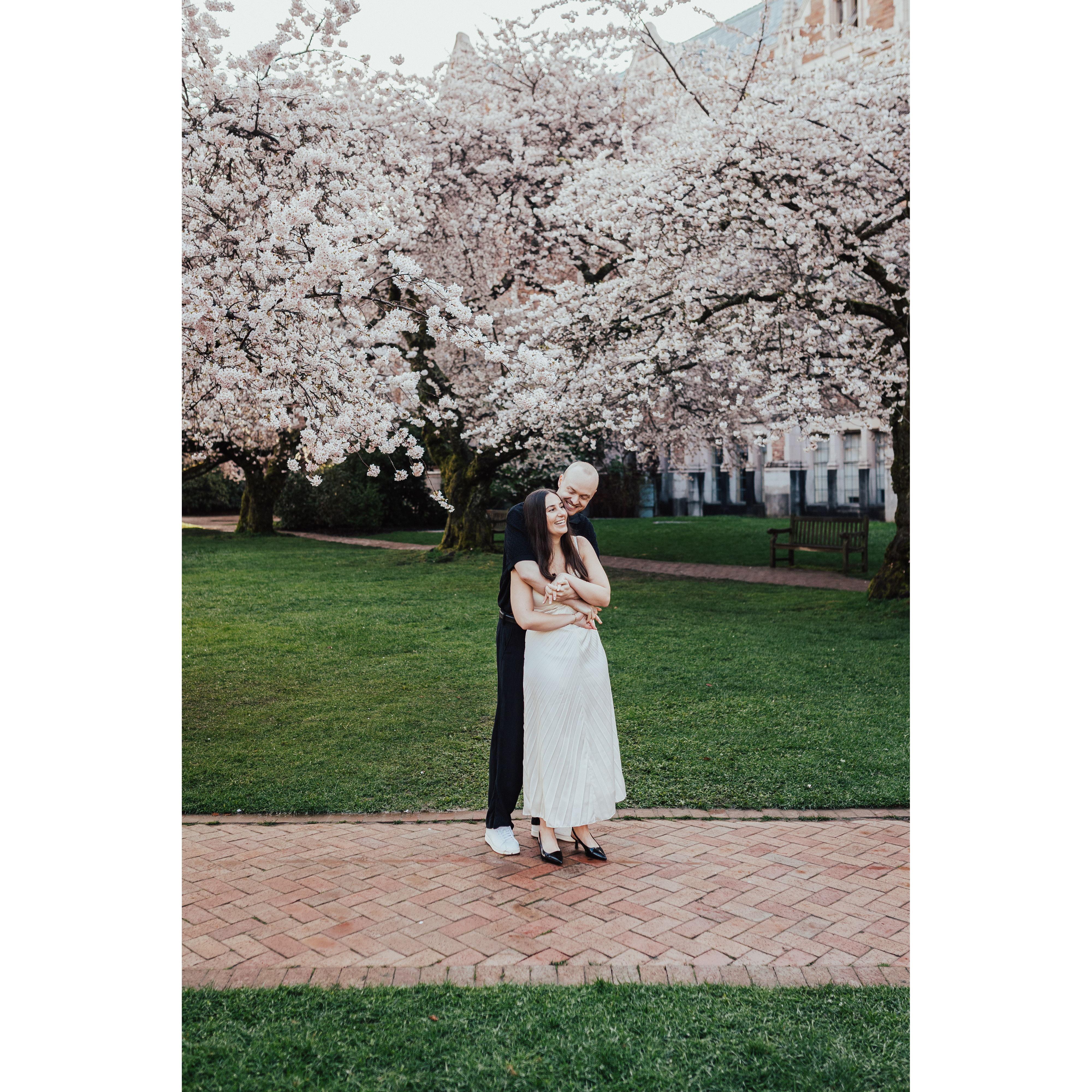 A few photos from Tori & Sam's engagement session with Steven Zhang Photography at University of Washington, where their love story “blossomed”.