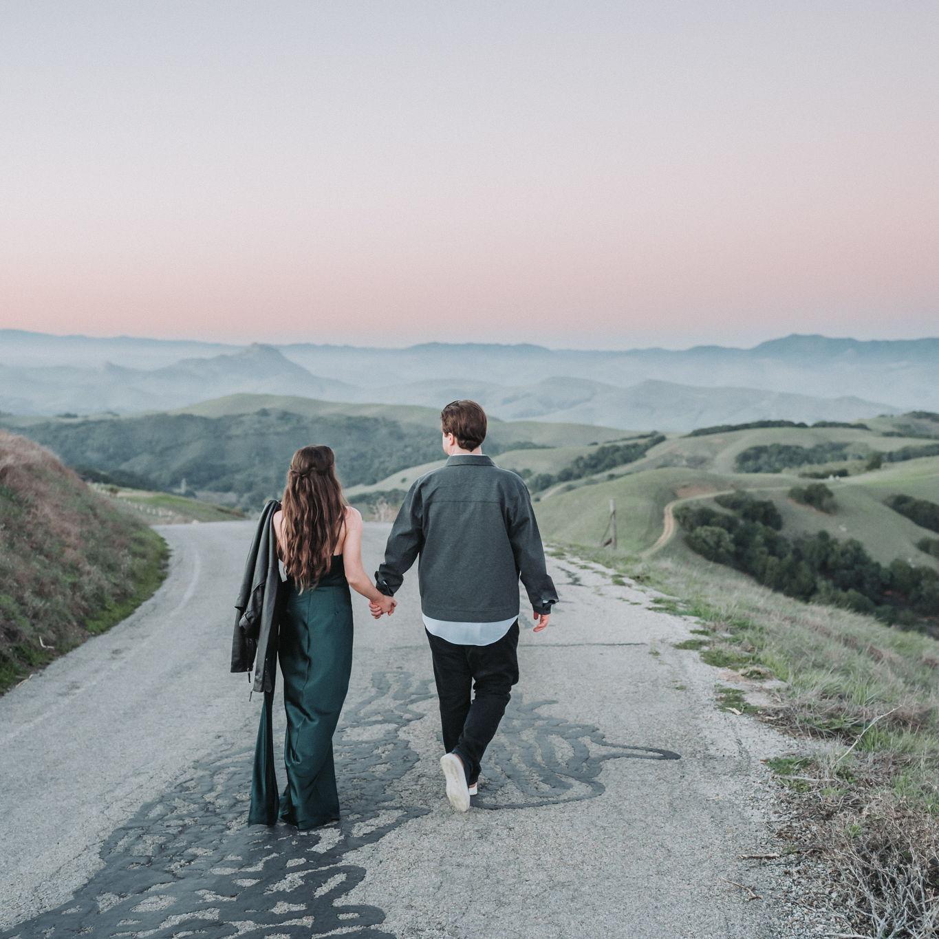 We followed up in December with an engagement shoot in San Luis Obispo, where we live. Those photos were captured by Burlap & Oak Photography and include Laguna Lake, one of our favorite parks near our home, followed by Prefumo Canyon with sweeping views of the Central Coast and toward Morro Bay.