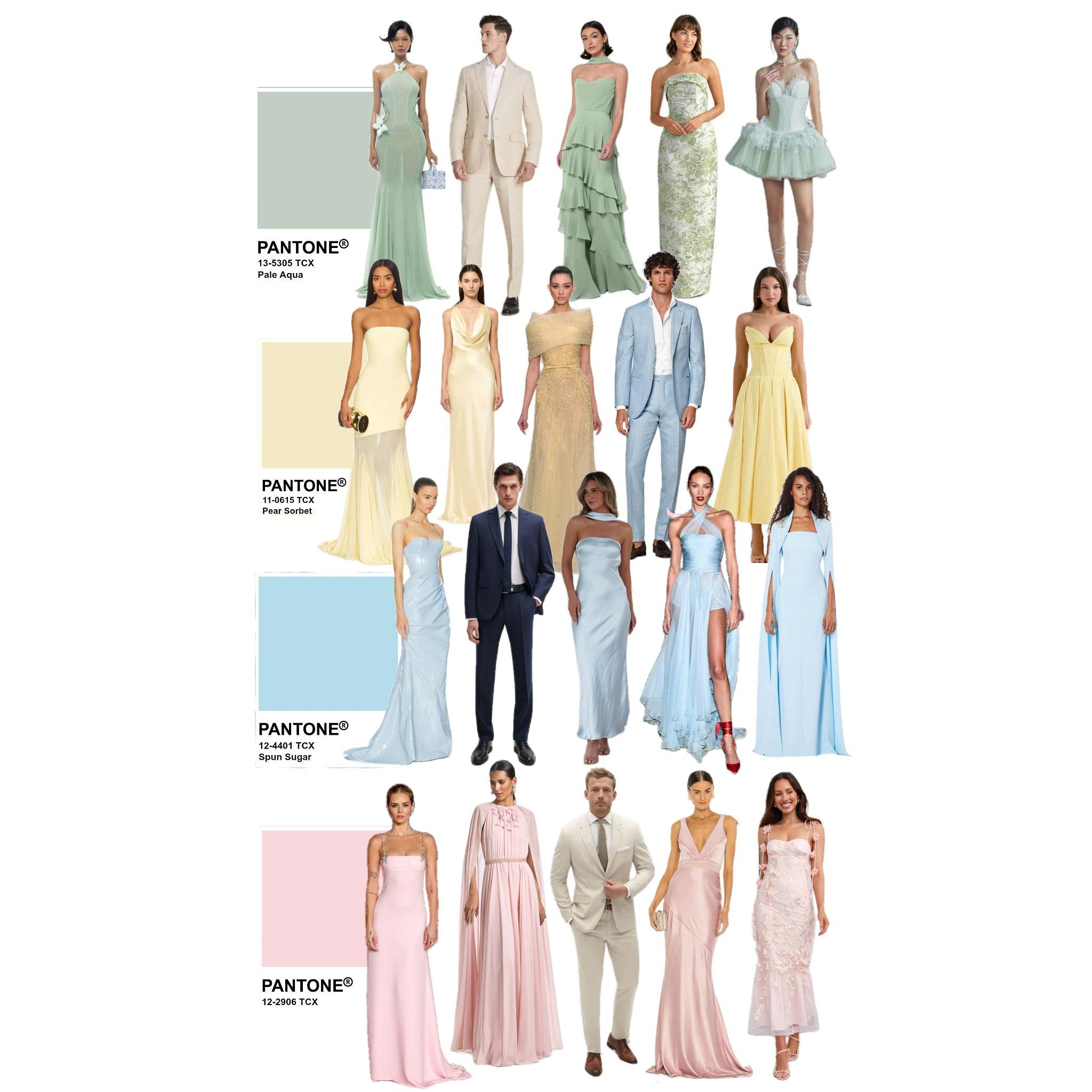 We encourage guests to wear soft, romantic tones like blush, sage, lavender, peach, sky blue, or sunny yellow. Light fabrics and floral patterns are perfect for the occasion!