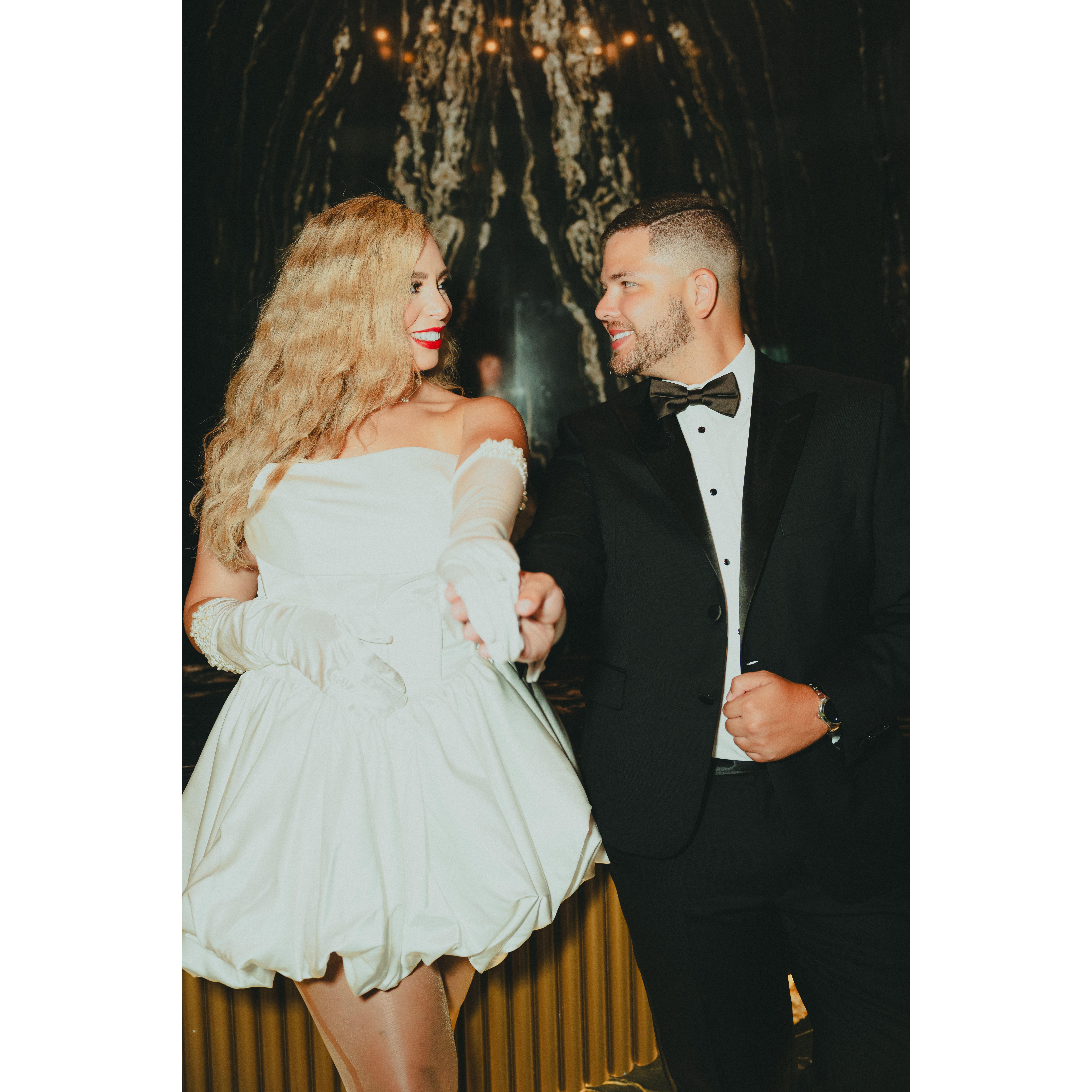 "Nos conocimos desde muy jovencitos y siempre supimos que lo que teniamos era demasiado fuerte y especial". Una querida amiga concretó una cita doble en enero de 2016, donde se verían frente a frente por primera vez. Vanessa, en high school, tenía 17 años, y Ernesto, casi los 20, estaba en college. Junto con sus dos amigos, fueron a una romántica cita doble, donde se divirtieron un montón y Ernesto fue todo un caballero lo cual eso a Vanessa le encanto. Al final de la cita, quedaron con ganas de más, y Ernesto le preguntó a Vanessa por su número de teléfono. Ella no se lo sabía de memoria y le dijo que mejor le diera el de él, pero Ernesto, muy pilas, le respondió que no, que mejor ella le diera el suyo para asegurarse de que sí la iba a poder contactar (de más está decir que fue un éxito). Luego de esa gran cita, ya estaba planificada la segunda. Con el paso de los meses, empezamos a conocernos más. El 24 de abril de 2016, Ernesto decidió sorprender a Vane con una cita especial durante el dia en SeaWorld, y después de un día lleno de aventuras y diversión, Ernesto llego a casa de Vane con una sorpresa más. Apareció con un ramo de rosas rojas y la invitó a un concierto de Nacho y Víctor Muñoz. Lo que no sabía Vanessa es que esa noche, Ernesto tenía algo muy especial planeado para ambos. Mientras bailaban "Mi Princesa" de Víctor Muñoz, Ernesto miró a Vane fijamente y, con una dulce sonrisa le preguntó: "¿Quieres ser mi princesa?" Vane toda sonrojada y, con el corazón lleno de felicidad, le respondio "Sí". Un tiempo después, fortaleciendo su noviazgo y construyendo una vida llena de momentos inolvidables, de amor, viajes, salidas, conocerse más y crecer nuestra familia con nuestro hijo perruno Leo en Agosto del 2019, y en Abril del 2020 decidimos mudarnos juntos. Sorprendentemente el convivir entre nosotros nos ayudó a fortalecernos más como pareja, crecer juntos y darnos cuenta de lo importante que somos el uno para el otro. Esto nos hizo plantearnos metas que queriamos cumplir juntos. A inicios de 2022, a Ernesto se le ocurrió empezar a buscar anillos para poder simbolizar ambos su amor eterno. Encontró el anillo que consideró perfecto para Vanessa y se lo logro mostrar a Florangel, su mamá (aunque aún no lo había comprado). Pasado el tiempo... El 1 de febrero de 2024, Ernesto decidió irse con su papa, Jose Ernesto y con la mama de Vane, Zuhail en busca nuevamente del anillo. Para su sorpresa, consiguió el mismo anillo que ya había visto anteriormente, y durante ese día se dio cuenta de que ese era el anillo elegido por él y que era perfecto para su princesa. Durante todo este proceso, Ernesto contactó a Mariela (una planificadora de propuestas de matrimonio en Aruba), un destino romántico que ambos deseaban visitar. Ernesto logro coordinar todo para que, el 25 de abril de 2024, lo que pensaba Vanessa que seria una cena romantica mas se convertiria en una perfecta y hermosa pedida de mano, frente a la playa, con un atardecer espectacular, donde Ernesto se arrodillaría y le preguntaría a Vanessa: "¿Quieres ser mi Reina y casarte conmigo?" A lo que Vanessa inmensamente feliz y con el corazon lleno de amor responderia: "¡Claro que Sí!" Celebramos con champagne y una romántica cena a la orilla del mar. Y por supuesto nuestra historia continúa, donde nos casaremos por civil el 26 de abril de 2025 en Orlando y por la iglesia el 11 de octubre de 2025 en Cancún, México. Donde nos uniremos ante Dios, para reafirmar lo que siempre hemos sabido: que nuestro amor es para toda la vida, que queremos formar una familia y envejecer juntos, compartiendo cada momento con la misma pasión y alegría que nos sigue uniendo hoy.