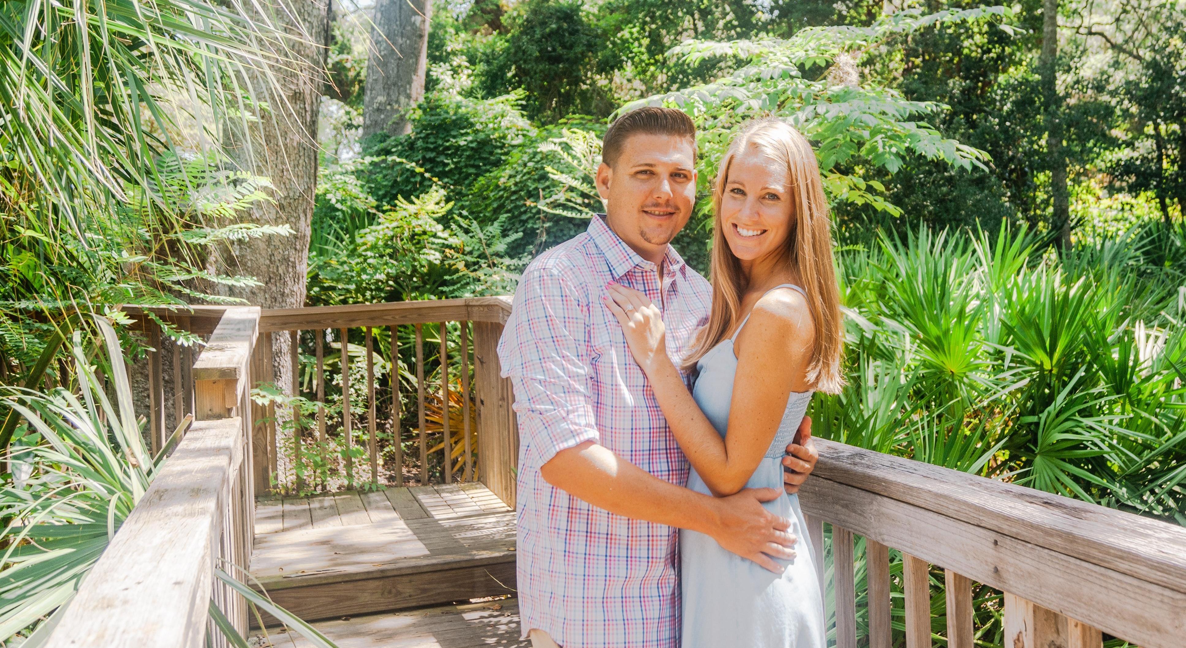 I had surprised Jared with a trip to North Carolina for his birthday. On our last day, we took a private hiking tour through the mountains. We were standing in front of a waterfall and Jared surprised me by getting down on one knee and asking for my hand in marriage. We're so excited to celebrate this next chapter in our lives with you. See you in Key West!