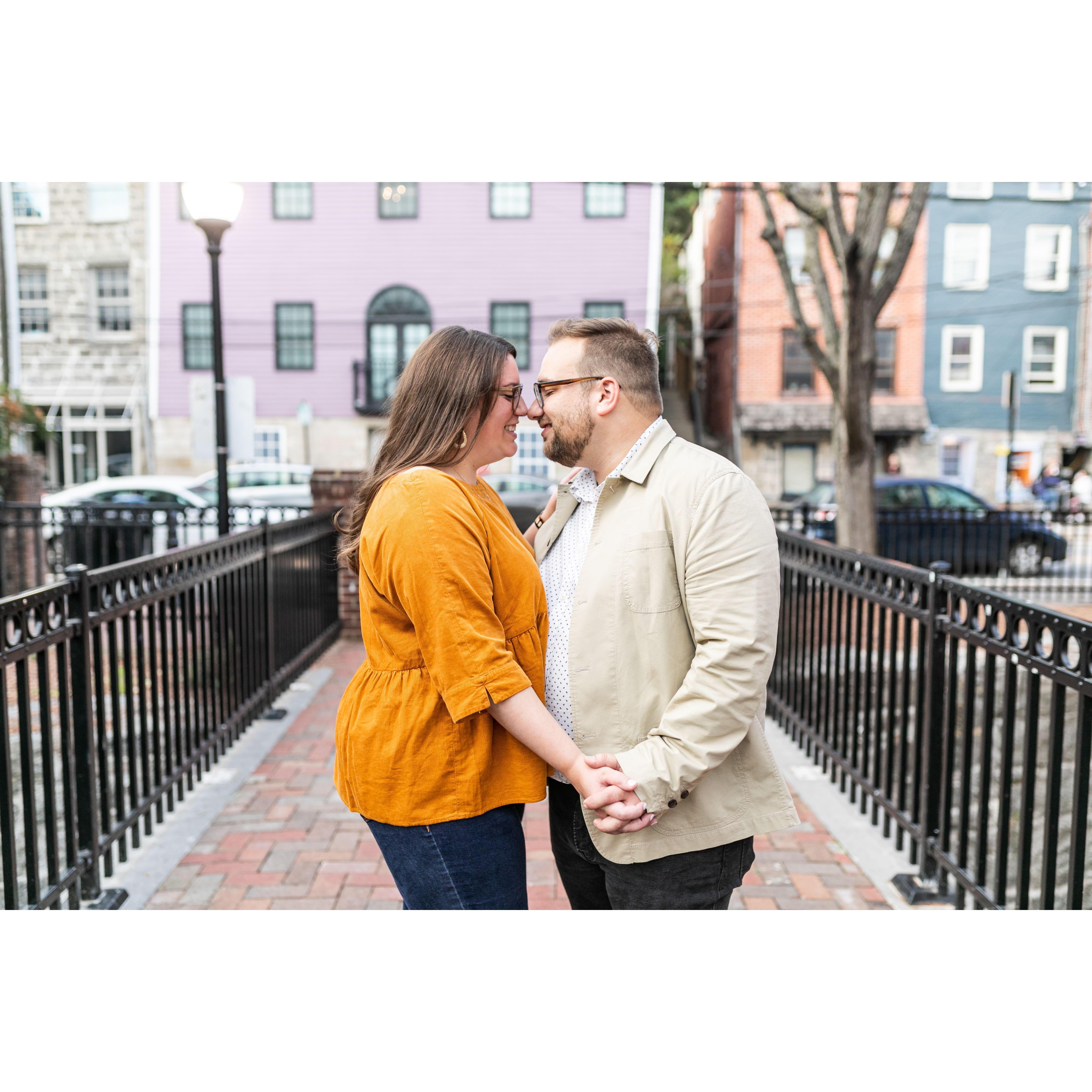 Fun fall engagement session in Old Ellicott City, MD! You can visit this page if you'd like to see photos from our 2020 wedding https://livingradiantphotography.pixieset.com/guestlogin/jonalexmarried