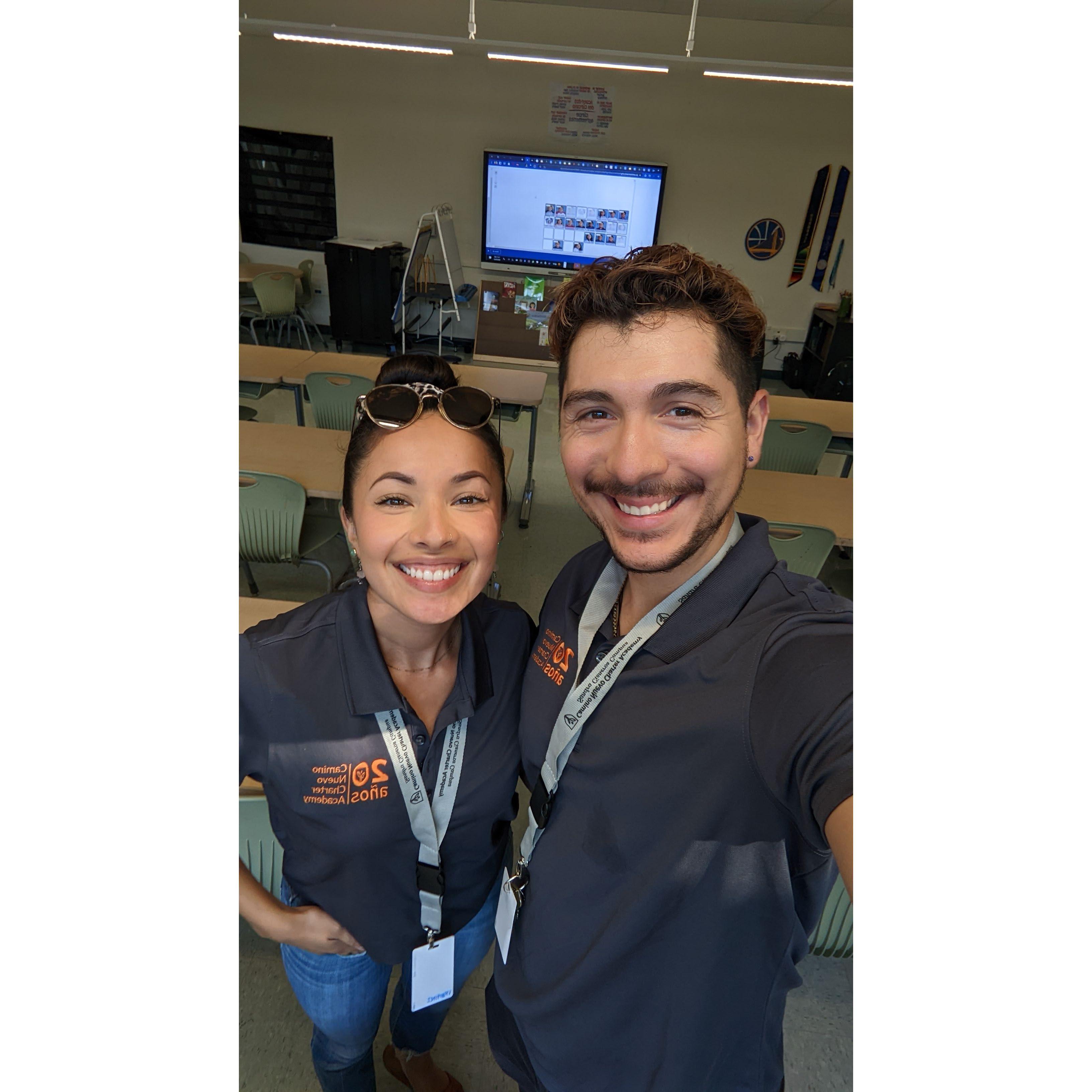 Emiliano and Victoria, both passionate teachers, crossed paths virtually through Zoom in the year 2021 at Camino Nuevo Charter Academy, unaware of the remarkable journey that awaited them. In 2022, fate intervened, and their virtual acquaintance flourished into a tangible reality. Emiliano, an intervention teacher, began working with students in Victoria's class, bringing them closer with every passing day. As November unfolded, Emiliano and Victoria realized a shared spiritual connection through the teachings of the Self-Realization Fellowship. The realization of their harmonious beliefs deepened their connection, filling their hearts with a shared purpose. Their first official date took place at a charming spot called Cafe de Olla in Burbank. The warmth of their conversation and the chemistry they shared left them longing for more. On their third date, the couple found themselves in the cozy embrace of Underdogs Basement Pub in Glendale. It was there that they expressed their deep affection for each other. Their fourth date was a magical evening at Venice Beach. As the waves crashed against the shore, Emiliano and Victoria shared their first kiss, sealing their connection with an indescribable sweetness. Their love journey took an unexpected turn during their first trip together to San Francisco for New Year's. During their trip, both Emiliano and Victoria contracted COVID-19, and they found themselves quarantined for nearly two weeks in Oxnard. Despite the challenging circumstances, they found solace in each other's company, cherishing the silver lining that they were going through it together. In July 2022, a new addition entered their lives—Shortie, an adorable furry companion who filled their home with boundless joy and unconditional love. Shortie became an emblem of their commitment and a constant reminder of the beautiful life they were building together. By August of the same year, Emiliano and Victoria decided to move in together in Glendale. That school year, Emiliano found himself teaching fifth grade, while Victoria dedicated herself to nurturing the minds of sixth-grade students. Their shared sense of adventure, financial aspirations, and professional growth led them to apply for teaching positions in China. The serendipity continued, and in October, they received an offer from the prestigious Shanghai American School. With hearts brimming with excitement and anticipation, they embraced the opportunity and committed to two years of teaching in a foreign land. Just a few months later, on a joyous summer day, surrounded by their loved ones, Emiliano orchestrated a going-away party to commemorate their new chapter. As the laughter and love filled the air, Emiliano knelt down on one knee, his heart overflowing with love, and asked Victoria the most important question of his life. Through fits of joyous giggles, Victoria, her eyes shining with happiness, exclaimed a resounding "yes!" And so, on that beautiful day, July 22, their love story reached a milestone, intertwining their lives forever.