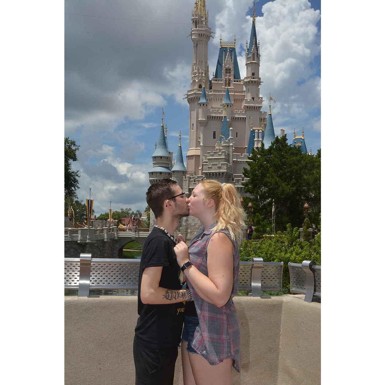 Here is the only proof of our engagement. It's low quality, but it captures us perfectly. We got engaged in Disney World in front of the Little Mermaid Ride.