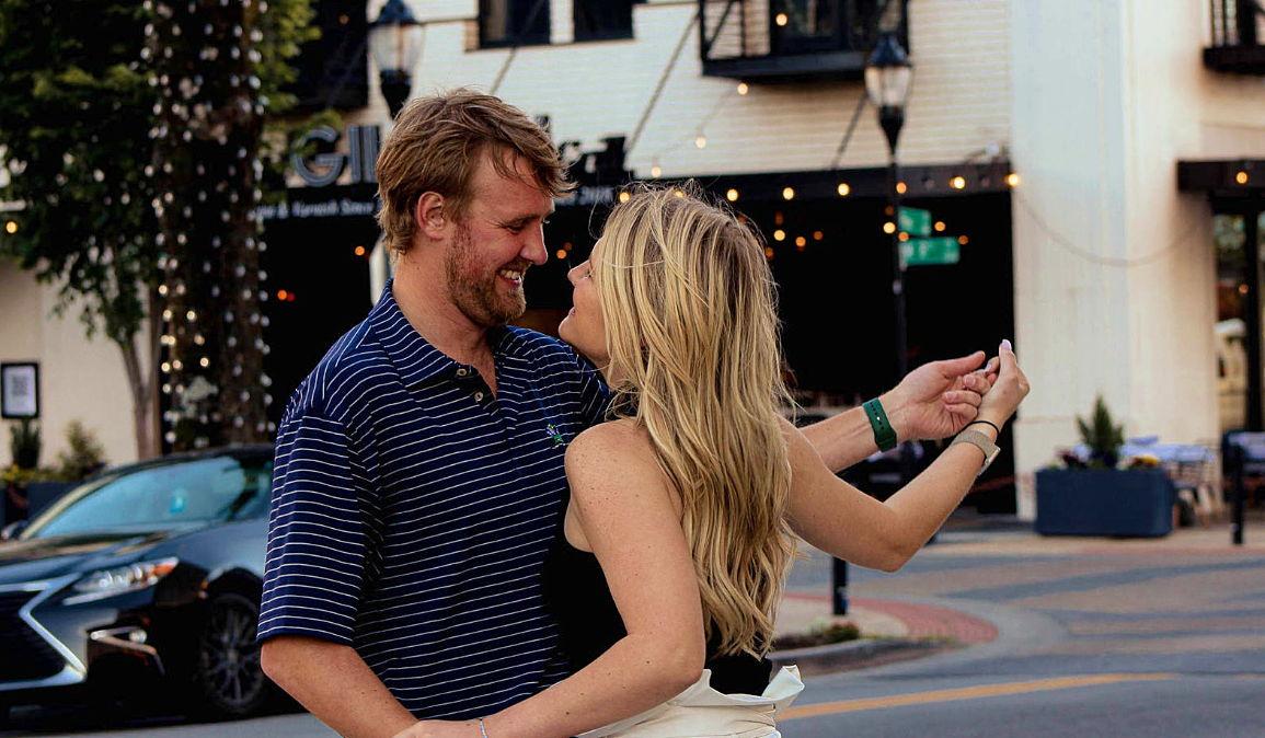 During 2016 Ben served as social chair for his fraternity (Kappa Sig) and Savannah was the social chair for her sorority (ADPI) . For those that don't know, that means we both were in charge of planning the social events -both internal and with other organizations. Adpi gals loved the kappa sig fraternity and really wanted to have an event with them as they were newly off probation. So Savannah reached out and got Ben's number and asked to plan something for the fall to which Ben agreed but had no idea as to what. In Savannah's version of the story, for the first 6 months of being social chair she would get random texts from Ben at all hours of the night with the most random ideas for a social event. Such as she remembers one night Ben texted her saying what if we have a huge roller skating party in the basement of the frat house, to which Savannah replied that sounds great where are we getting enough roller skates. Savannah assumes Ben didn't have any ideas as he would never respond to texts after that. These wild ideas continued until one day in September he said why don't we all dress up and have a party for the local orphanage. Savannah loved the idea, but being that the next month was Halloween they turned it into a truck or treat with the boys and girls club as Chattanooga didn't have a local orphanage. The event turned out to be amazing as members of both organizations were paired up to decorate their cars and everyone went all out with the decorations. 6 months later Savannah's friend Cailee Sinclair worked with Ben at Hutton Development and kept telling her that Ben liked her. Savannah didn't believe her as she hadn't really talked to Ben since that event. Well one night Savannah and her friends walked into one of UTC kids regular hangout spots- Jefferson's. It was a pretty dead that night, except for one big table of rowdy Kappa Sig boys (Ben and his friends). We all ended up sitting together, and eventually Ben came up to Savannah and asked if she wanted to go on a date on Friday. Of course she said yes, and he picked her up and really wowed her taking her to a really nice brand new Westin rooftop for dinner- fast forward 6 years later that would be the same spot he proposed in front of both of our families and friends.