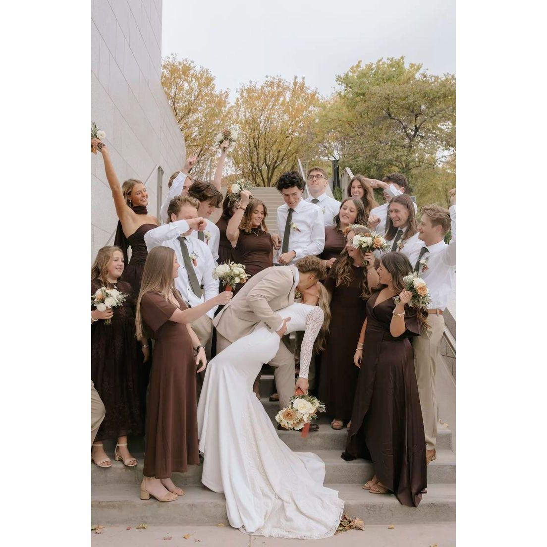 Our color is browns!! Please wear shades of brown, orange, dark green, or neutrals! Just no tan suit because that is what Colton is wearing and no white dress ;)