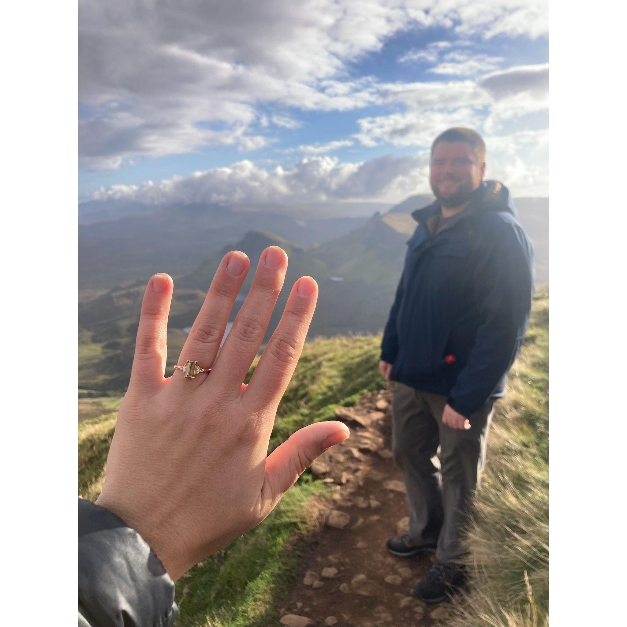 Zack proposed to Gina on October 1, 2024 on the top of a mountain on the Isle of Skye, Scotland. It was absolutely beautiful! Gina says she didn't see it coming because she didn't read any nerves on Zack until he started fumbling with the ring in his pocket. Zack says he was only nervous about Gina standing too close to the edge of the cliff.