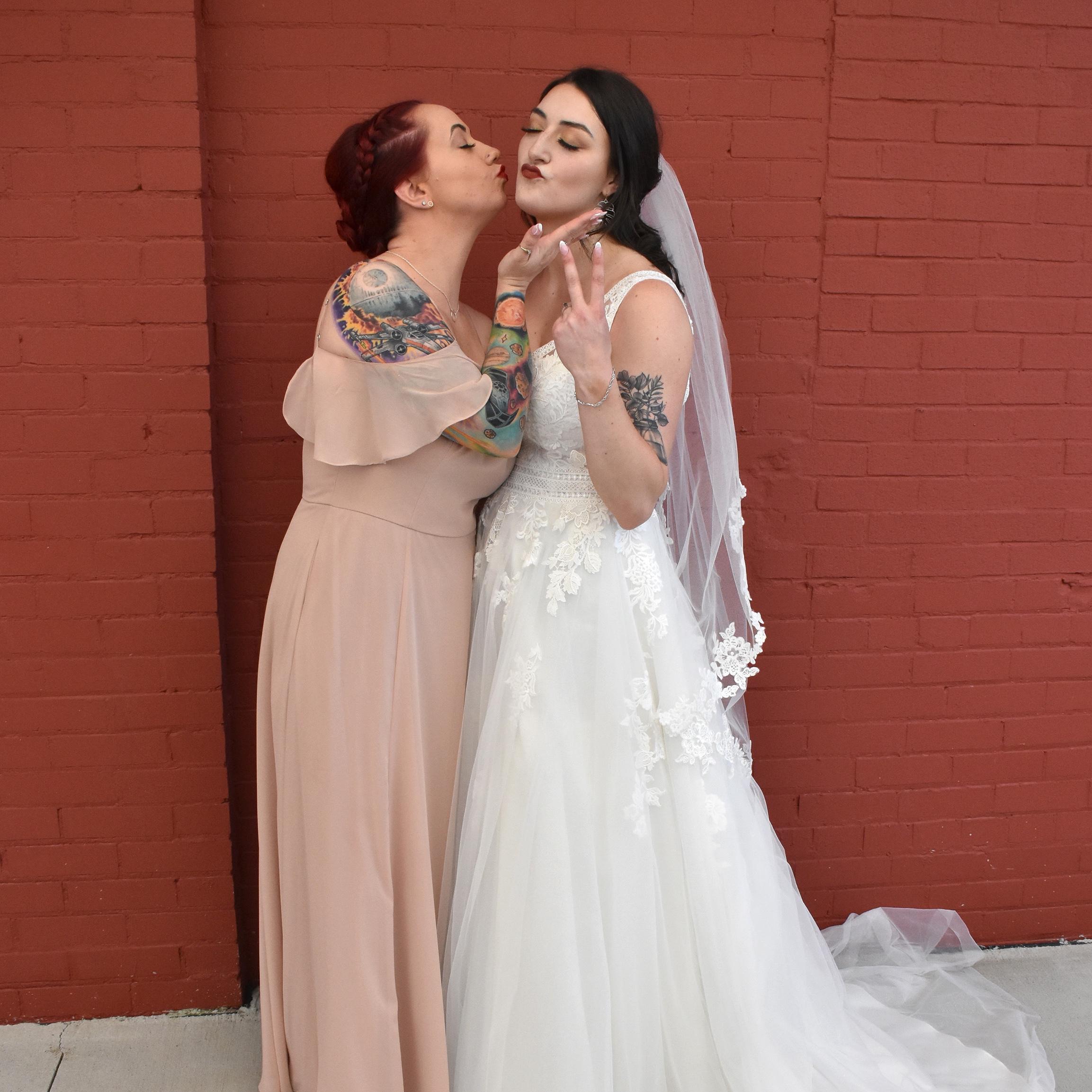Mckenzie and Carissa met while working at the same pizza shop in Carissa’s hometown! They have been through so much together that nothing can break their bond. Fun fact: Carissa caught the bouquet at Mckenzie and Dalton’s wedding!